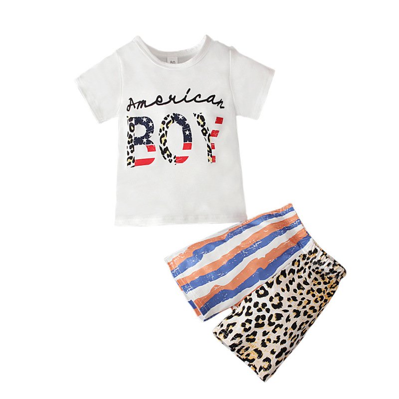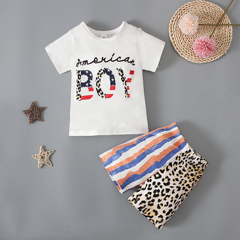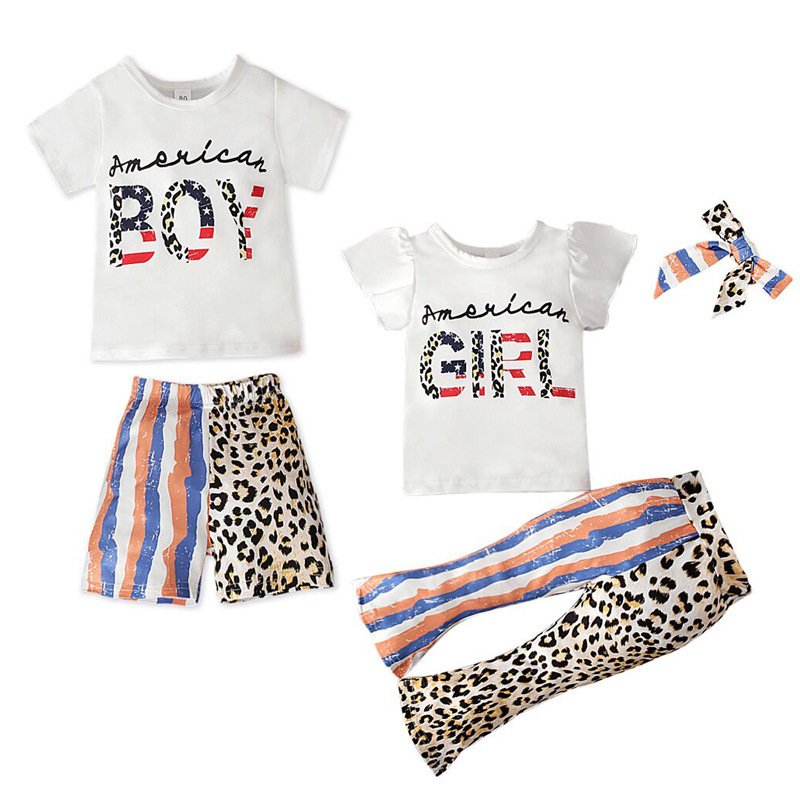 Children Kids Baby Fashion Girls Boys Independence Day Flag Short Sleeve Letter Print T-Shirt And Shorts Set