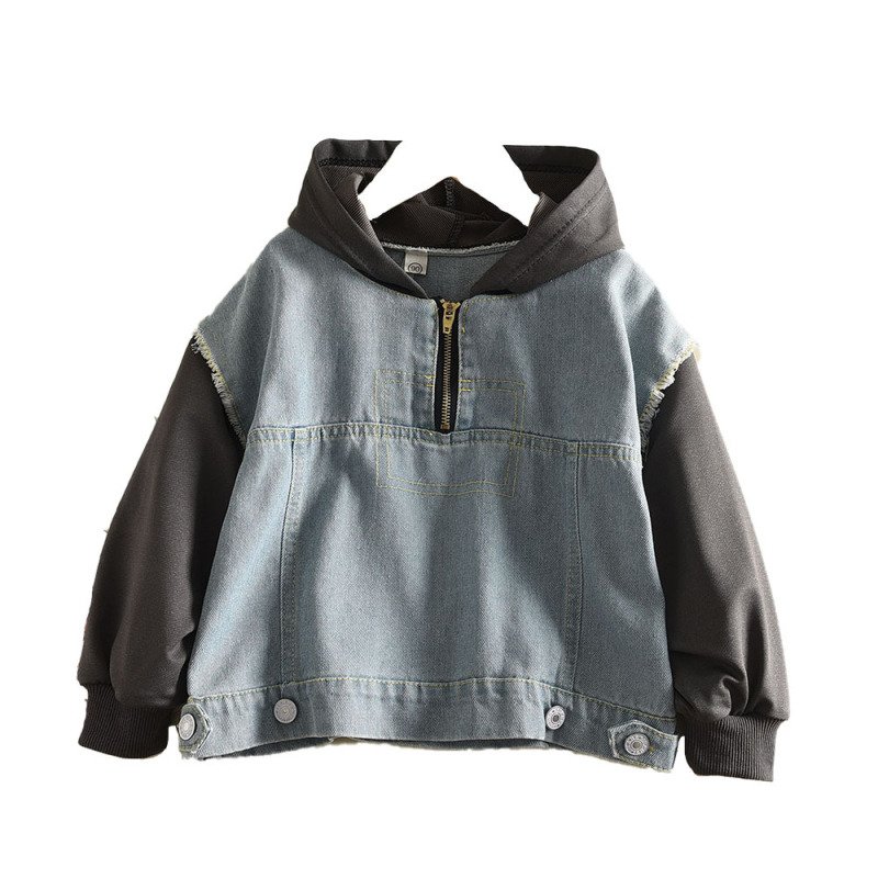 Children Kids Baby Fashion Girls Boys Long Sleeve Denim Splicing Hoodies