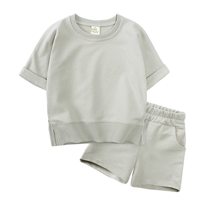 Children Kids Baby Fashion Girls Boys Short Sleeve Solid Color T-Shirt And Shorts 2pcs Set