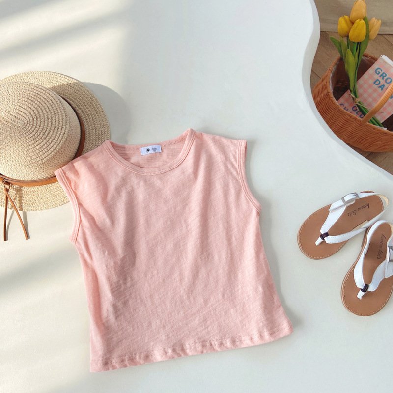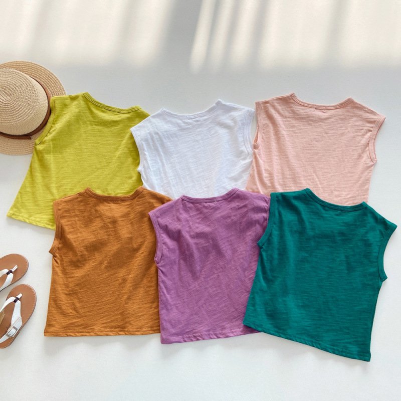 Children Kids Baby Fashion Girls Boys Sleeveless Candy Color T-Shirt