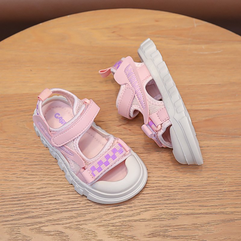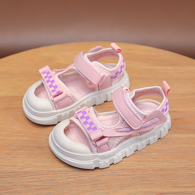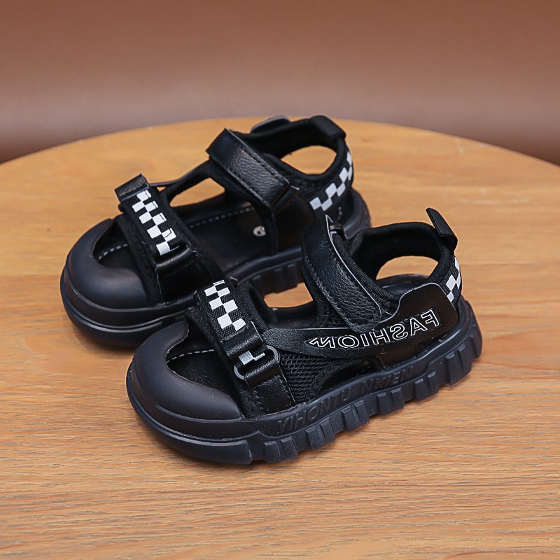 Children Kids Baby Fashion Girls Boys Soft Bottom Open Toe Plaid Sandals Shoes