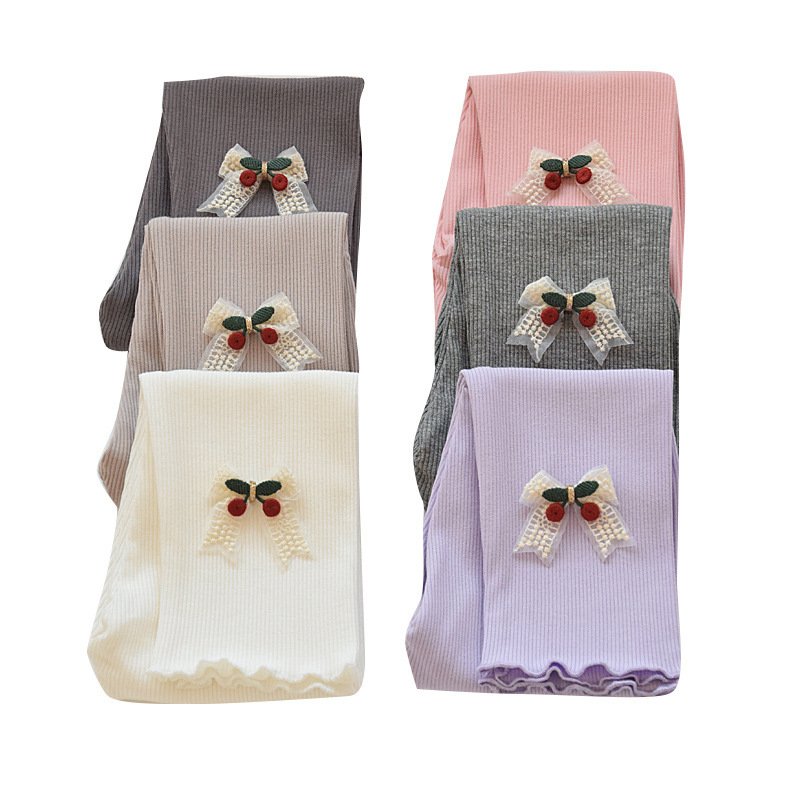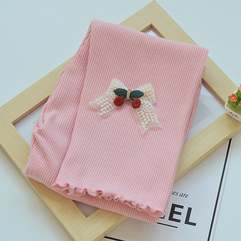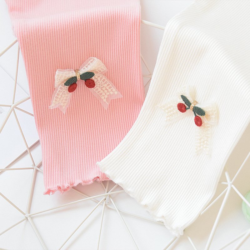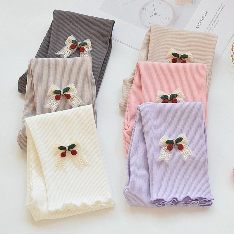 Children Kids Baby Fashion Girls Casual Basic Bow Cherry Leggings Pants