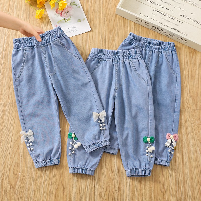 Children Kids Baby Fashion Girls Casual Basic Bow Thin Denim Flared Pants