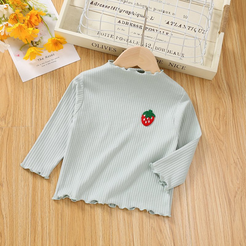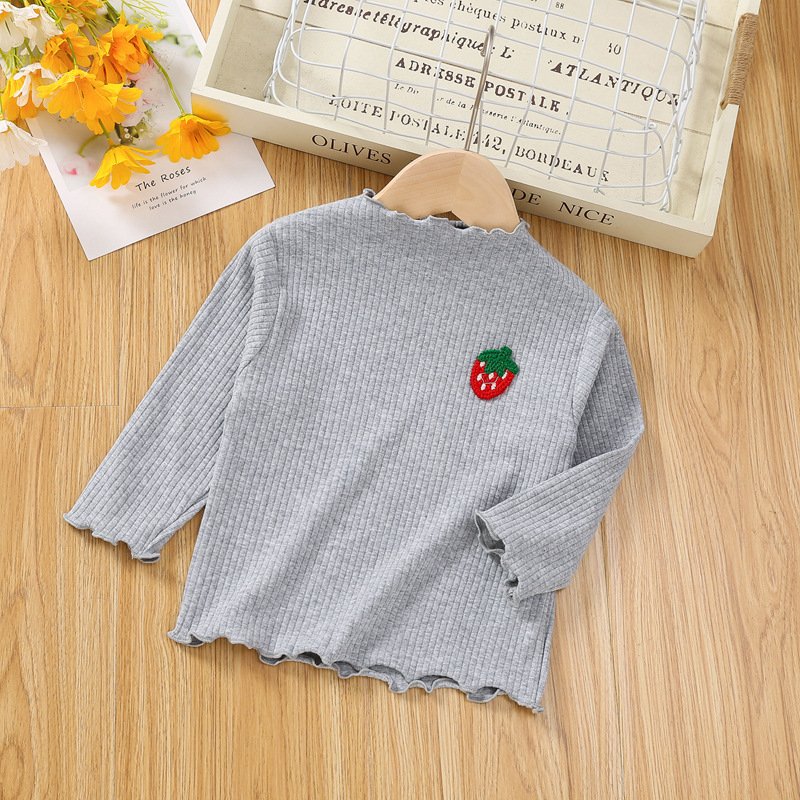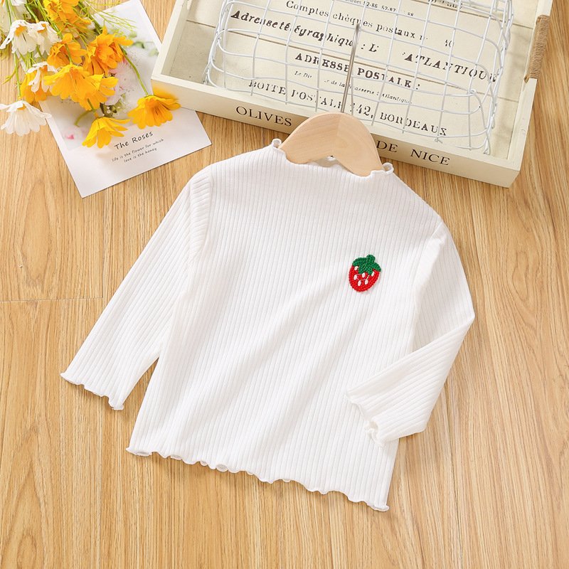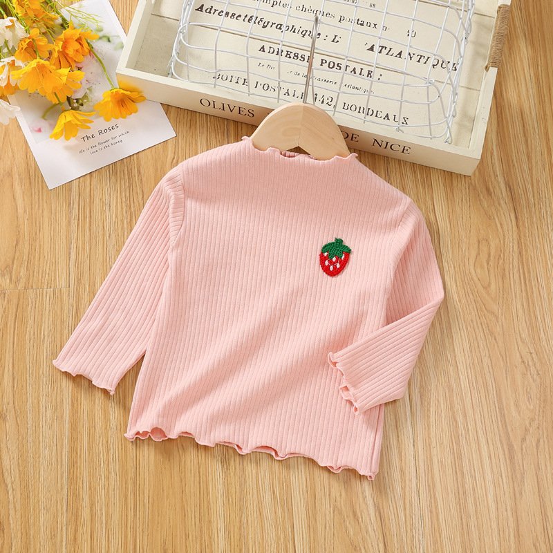 Children Kids Baby Fashion Girls Casual Basic Long Sleeve Ruffle Strawberry T-Shirt