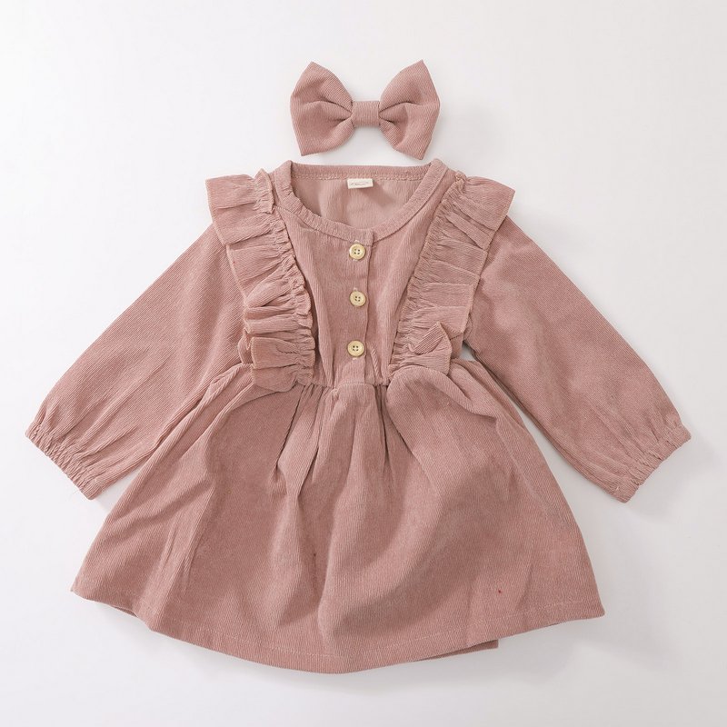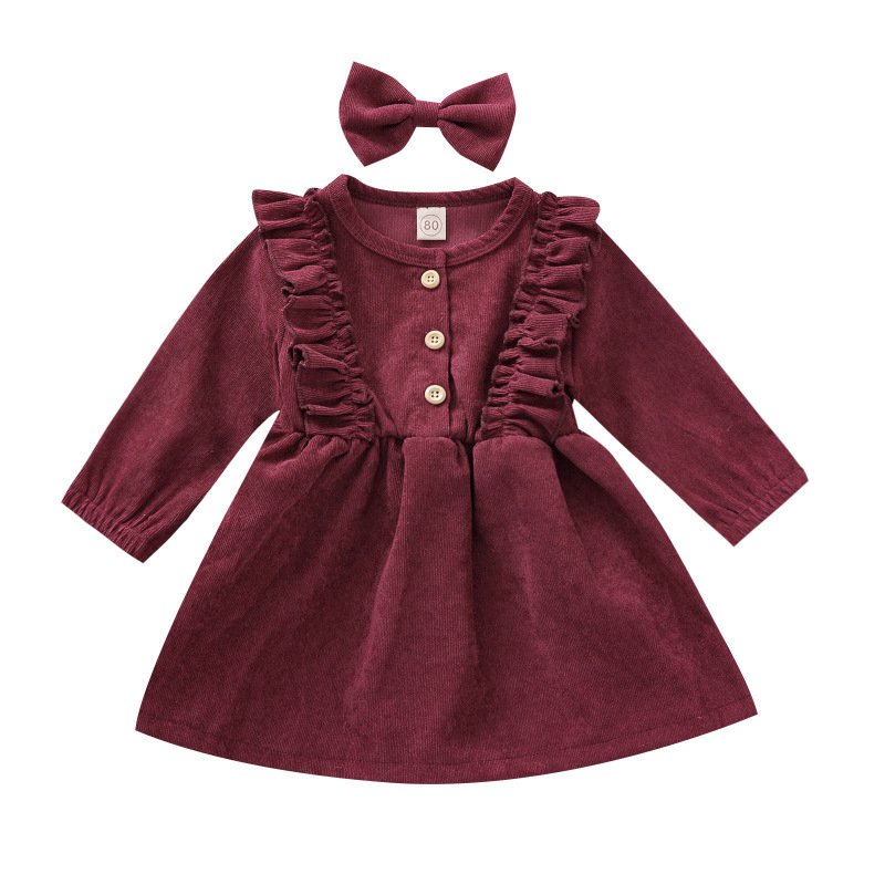 Children Kids Baby Fashion Girls Casual Basic Long Sleeve Solid Color Dress