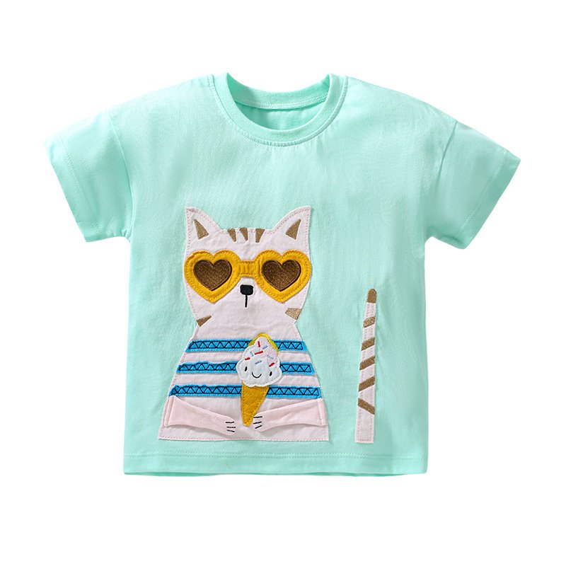 Children Kids Baby Fashion Girls Casual Basic Short Sleeve Cartoon Cat T-Shirt