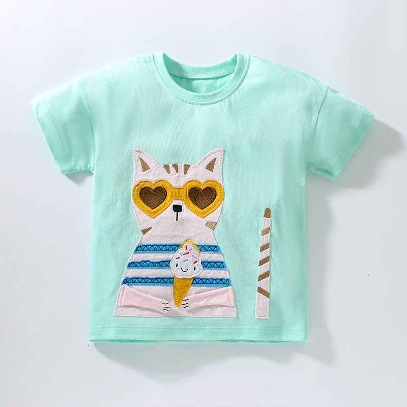 Children Kids Baby Fashion Girls Casual Basic Short Sleeve Cartoon Cat T-Shirt