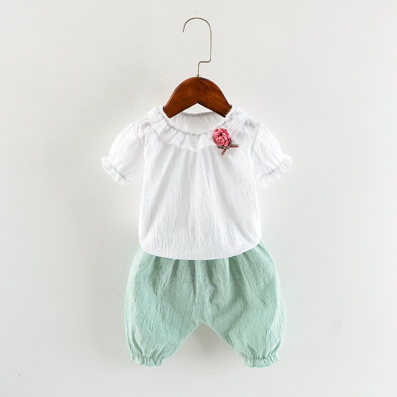 Children Kids Baby Fashion Girls Casual Basic Short Sleeve Flower T-Shirt And Shorts 2pcs Set