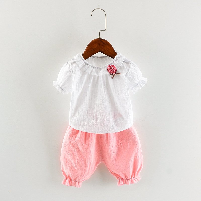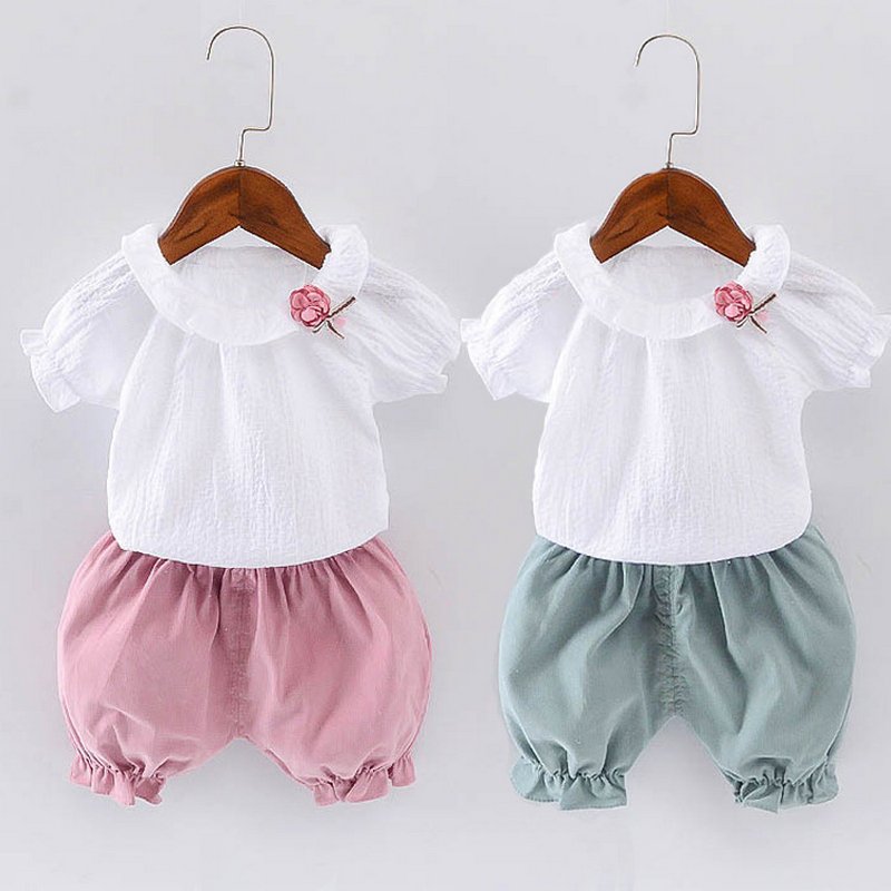 Children Kids Baby Fashion Girls Casual Basic Short Sleeve Flower T-Shirt And Shorts 2pcs Set