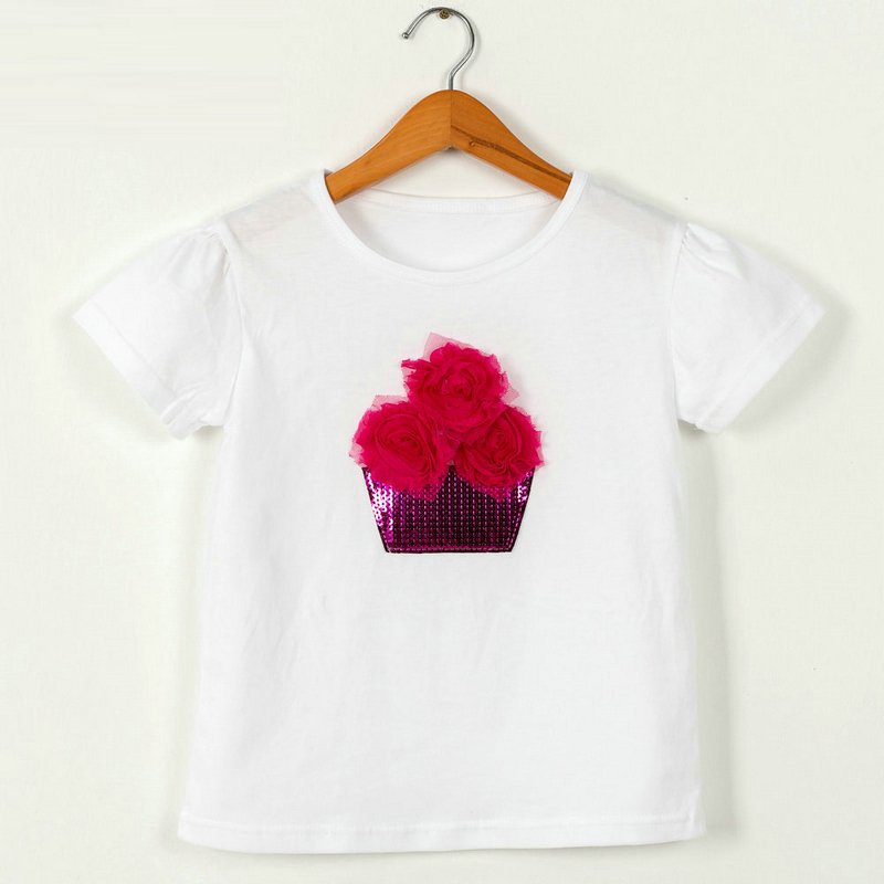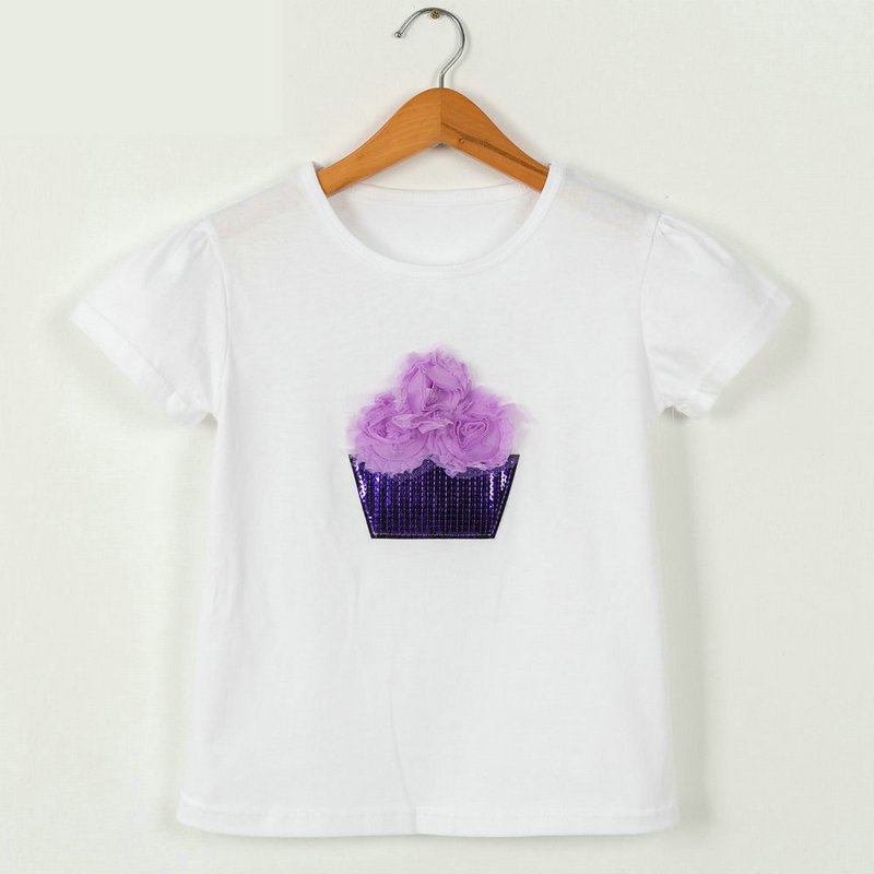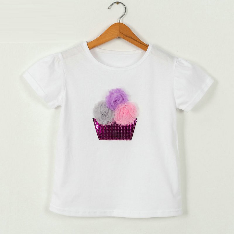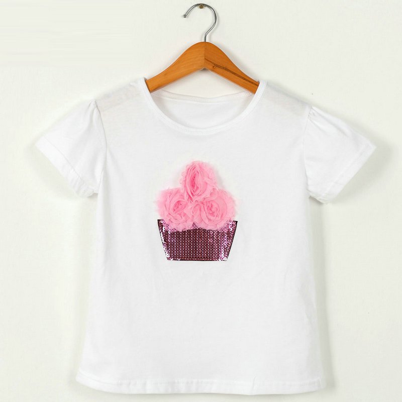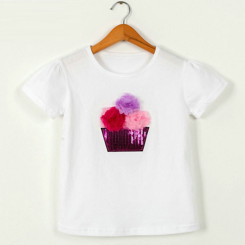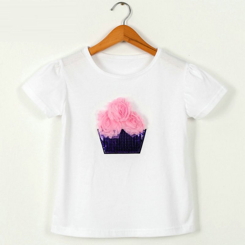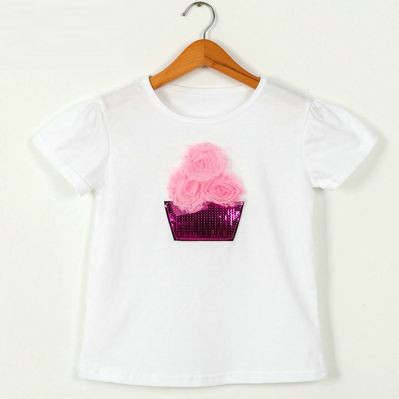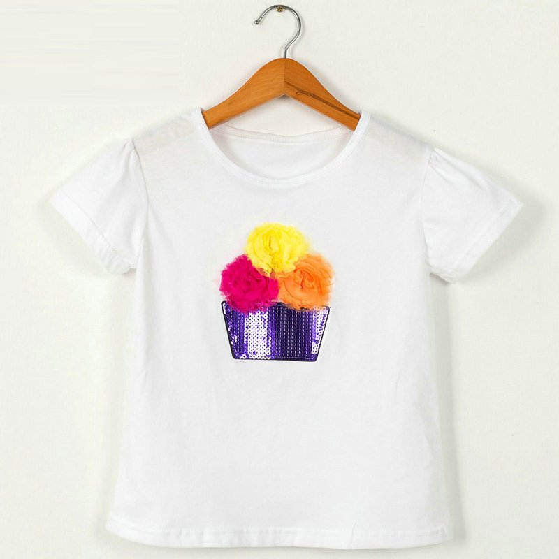 Children Kids Baby Fashion Girls Casual Basic Short Sleeve Sequin Flower T-Shirt