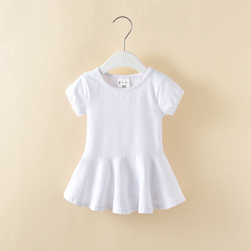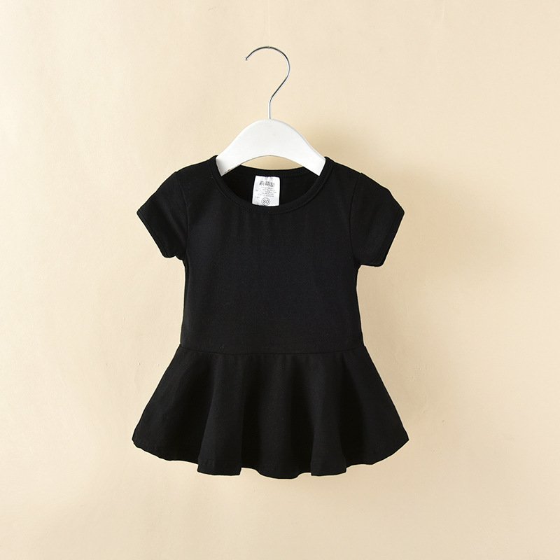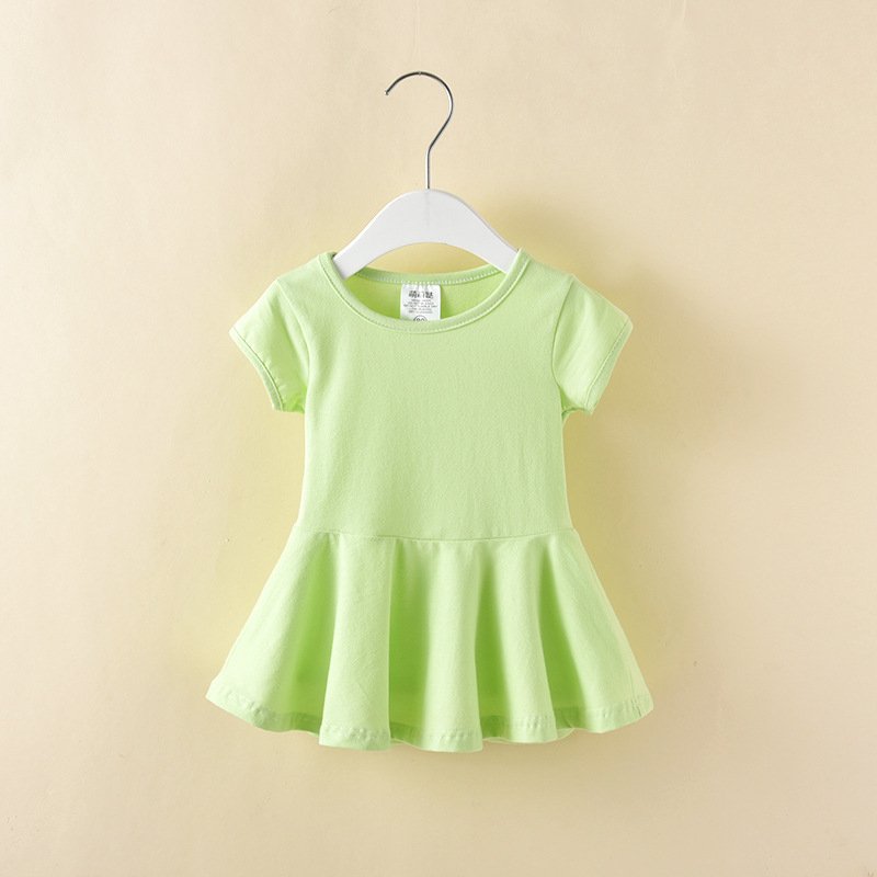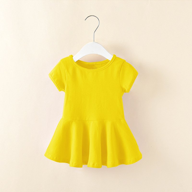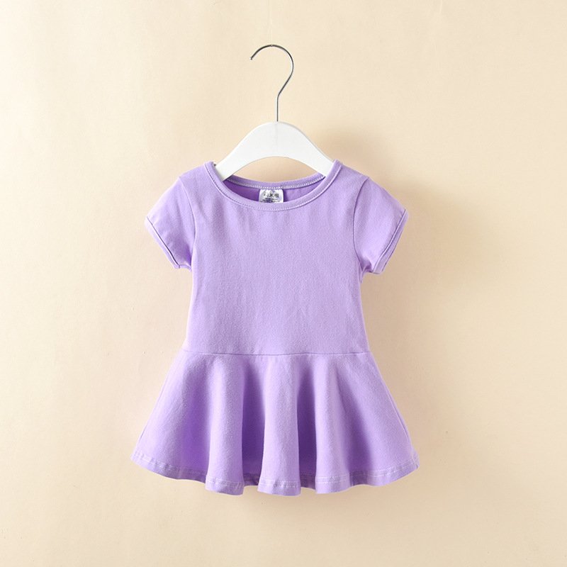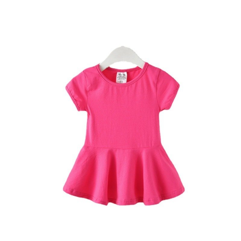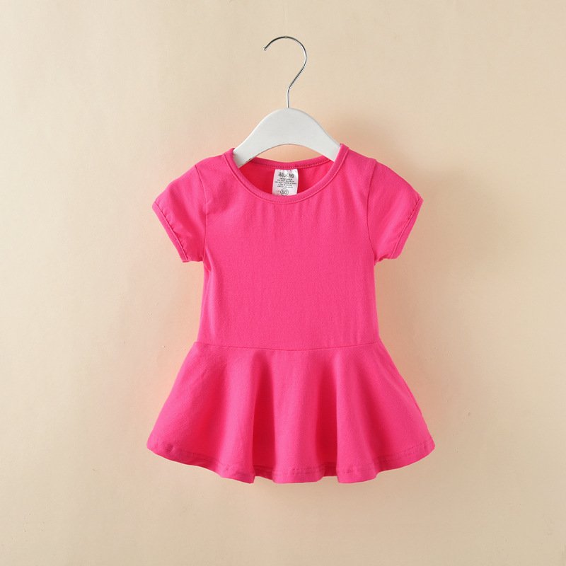Children Kids Baby Fashion Girls Casual Basic Short Sleeve Solid Color Dress