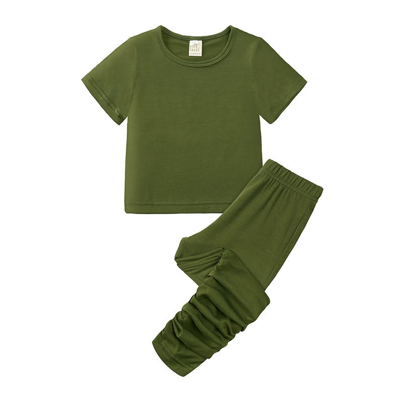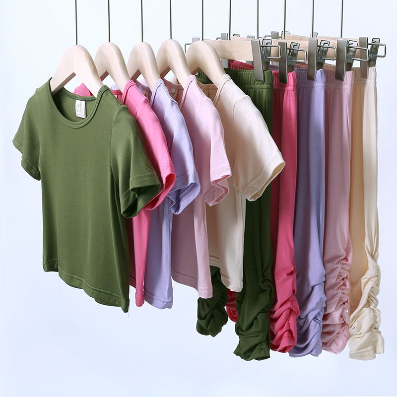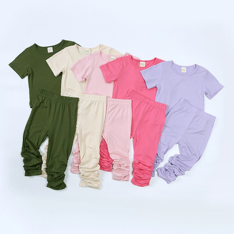 Children Kids Baby Fashion Girls Casual Basic Short Sleeve Solid Color T-Shirt And Pants 2pcs Set