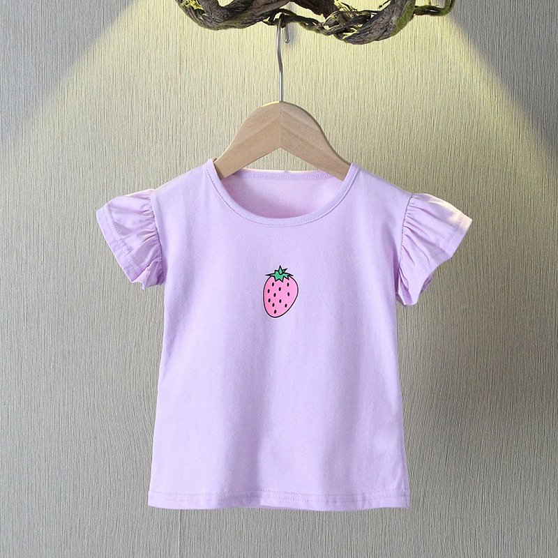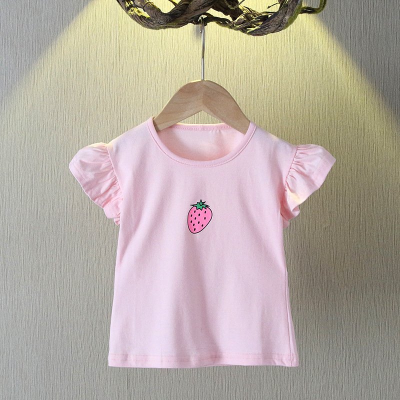 Children Kids Baby Fashion Girls Casual Basic Short Sleeve Strawberry Print T-Shirt
