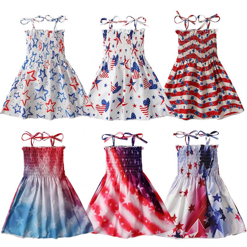 Children Kids Baby Fashion Girls Casual Basics Sleeveless Flag Independence Day Star Print Sling Dress