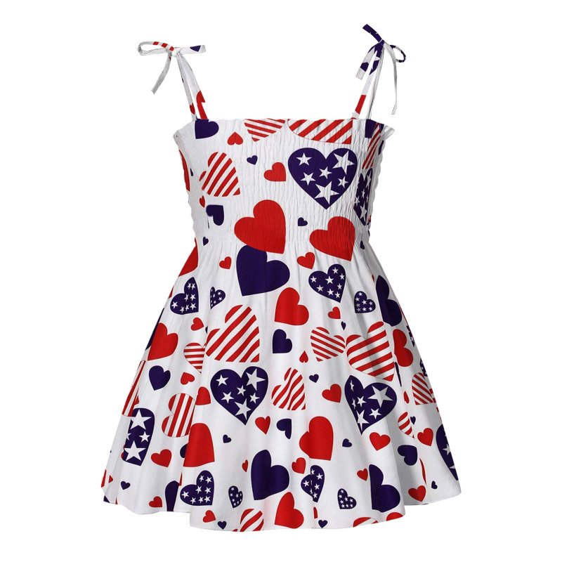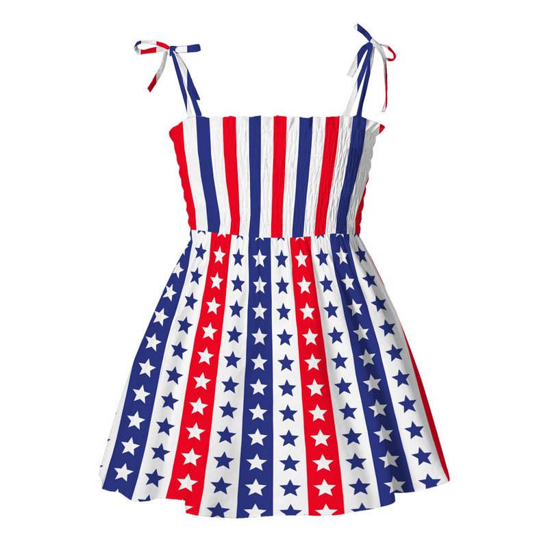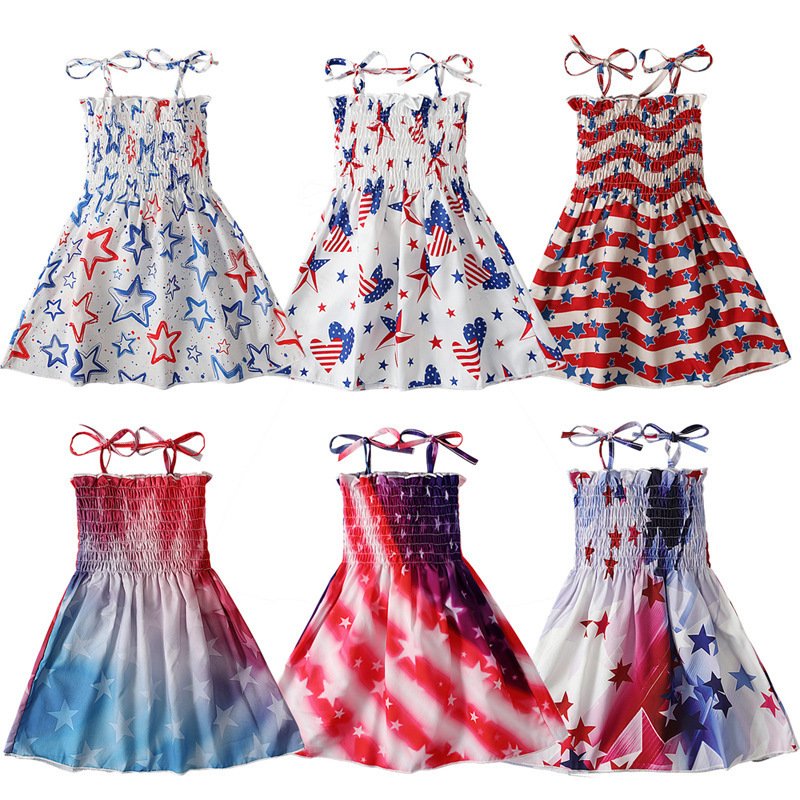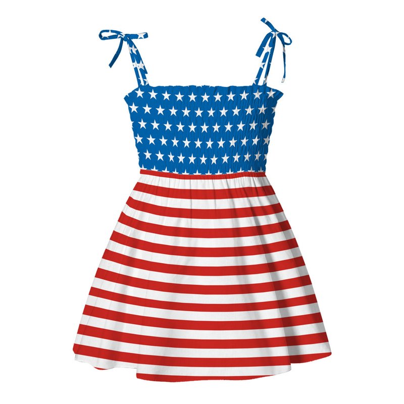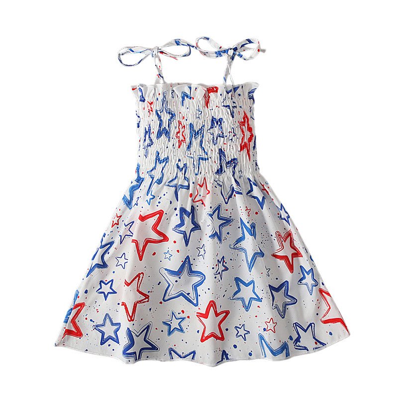 Children Kids Baby Fashion Girls Casual Basics Sleeveless Flag Independence Day Stars Print Sling Dress