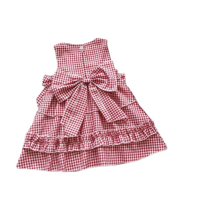 Children Kids Baby Fashion Girls Casual Basics Sleeveless Red Plaid Bowknot Princess Dress