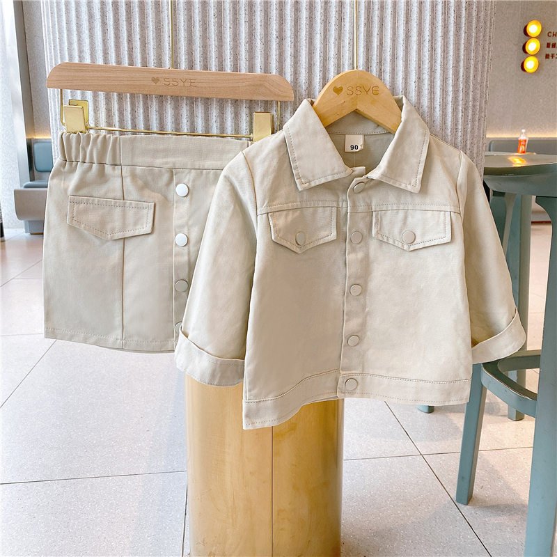 Children Kids Baby Fashion Girls Casual Long Sleeve Solid Color Jacket And Skirt 2pcs Set