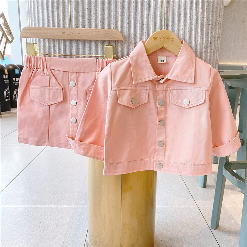 Children Kids Baby Fashion Girls Casual Long Sleeve Solid Color Jacket And Skirt 2pcs Set