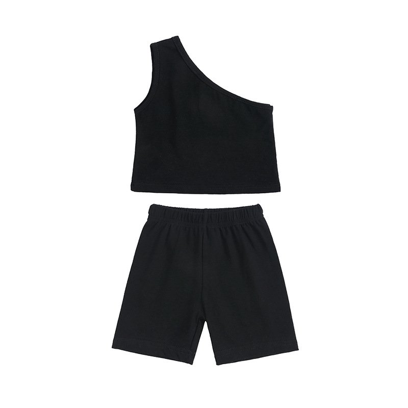 Children Kids Baby Fashion Girls Casual One-Shoulder Suspenders Solid Color Top And Shorts 2pcs Set