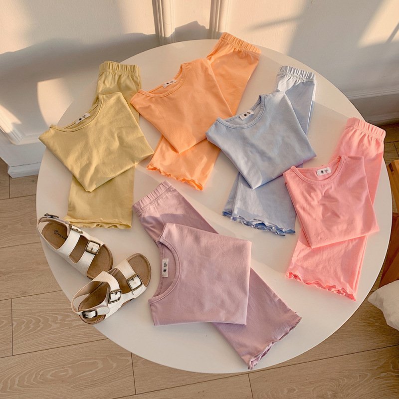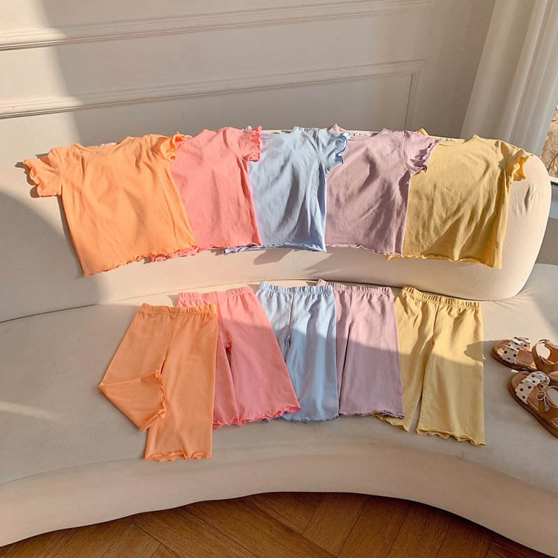 Children Kids Baby Fashion Girls Casual Short Sleeve Candy Color Top And Shorts Pajamas 2pcs Set