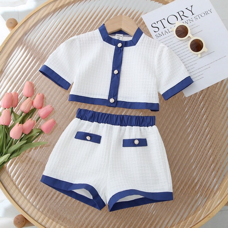 Children Kids Baby Fashion Girls Casual Short Sleeve Color Matching Tops And Skirt 2pcs Set