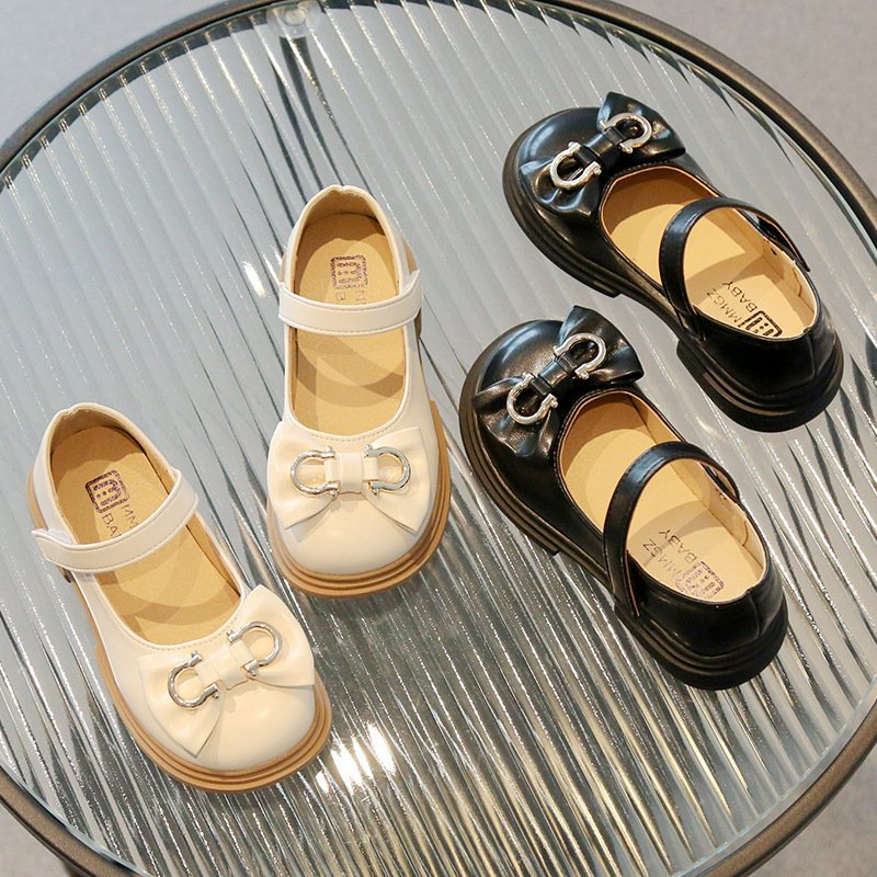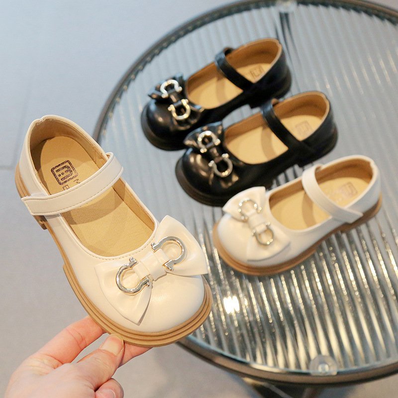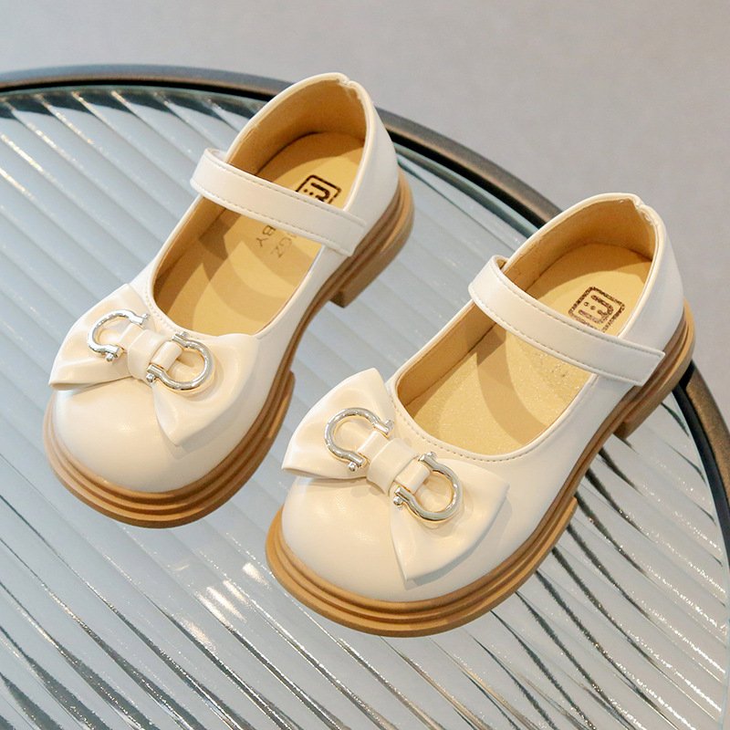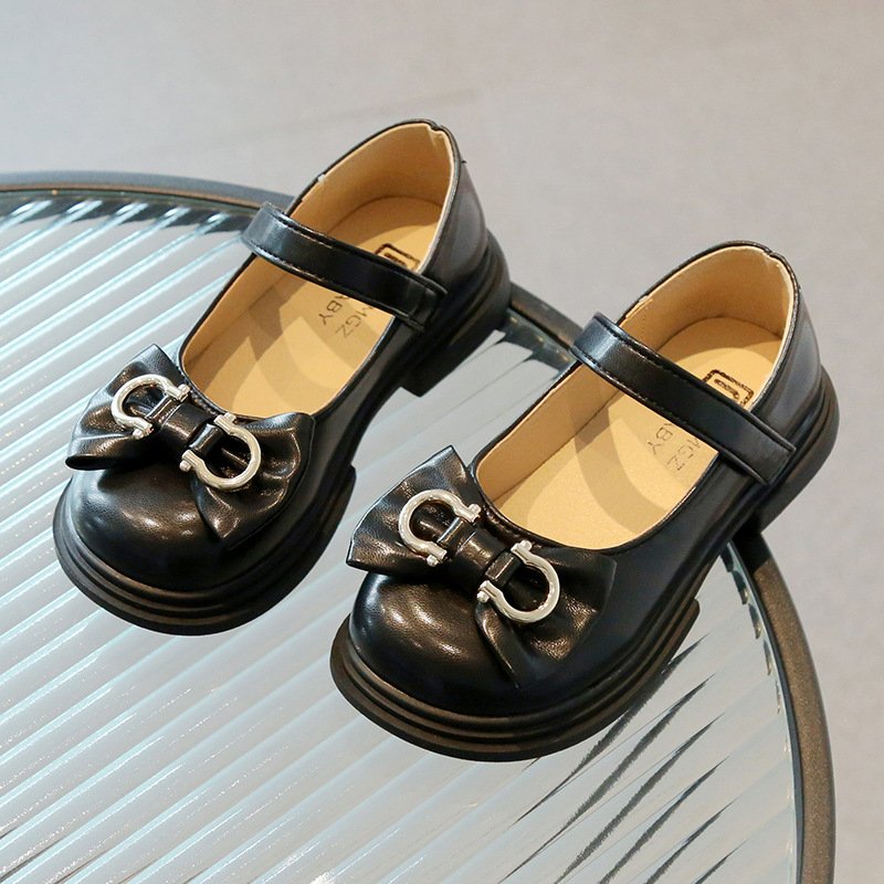 Children Kids Baby Fashion Girls Cute Bowkno Soft Bottom Round Toe Pu Leather Princess Shoes