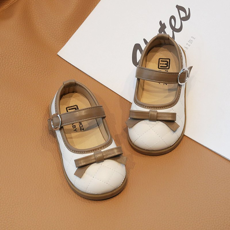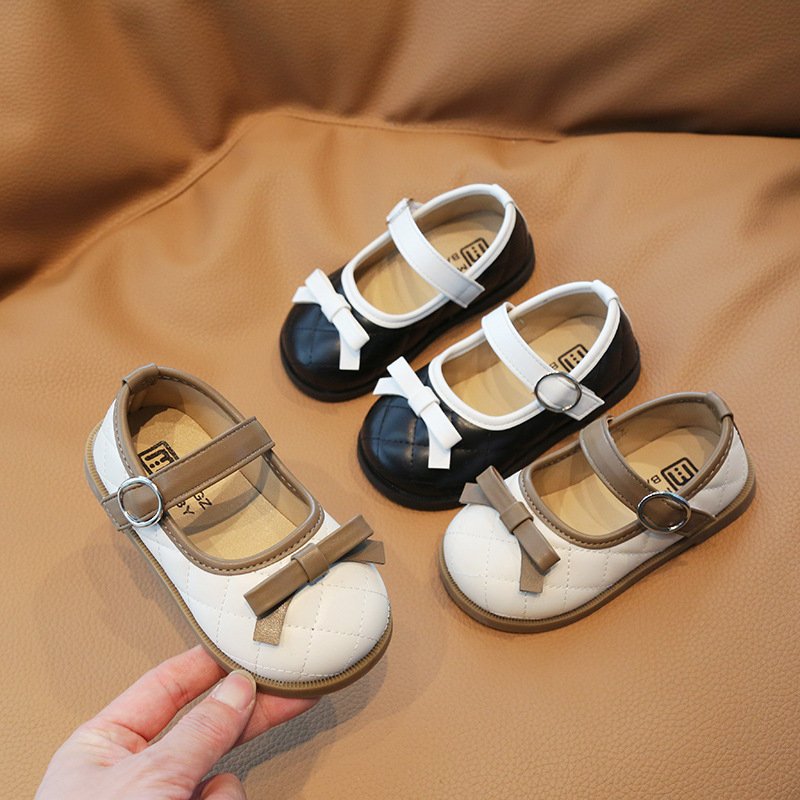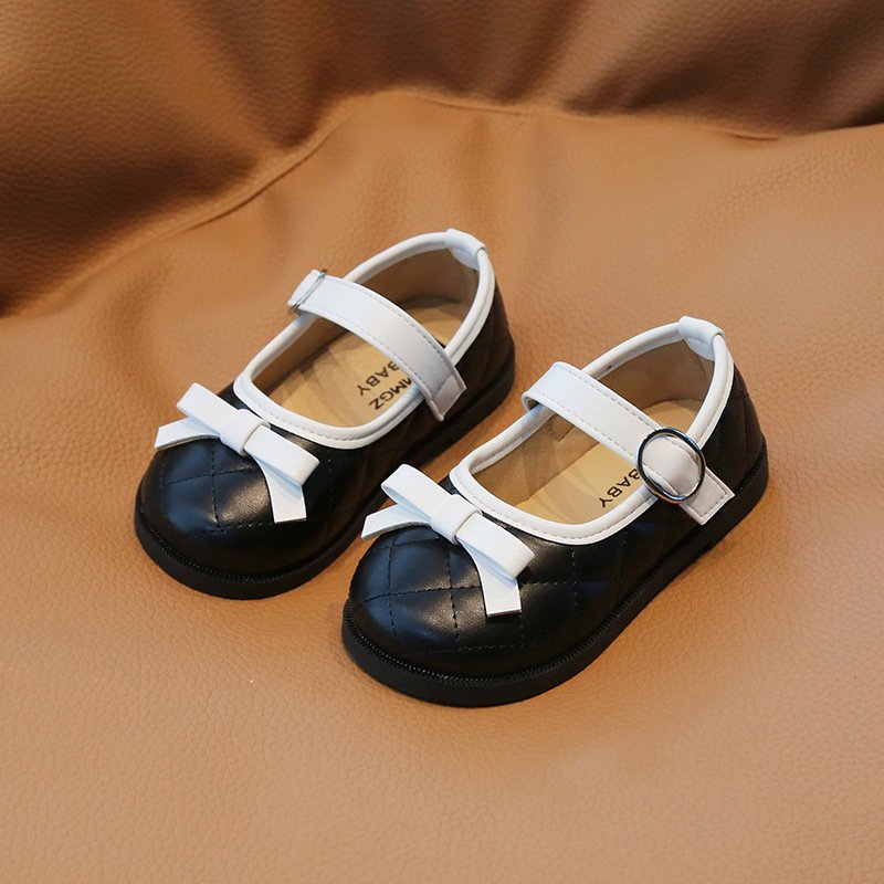 Children Kids Baby Fashion Girls Cute Bowknot Soft Bottom Round Toe Pu Leather Princess Shoes