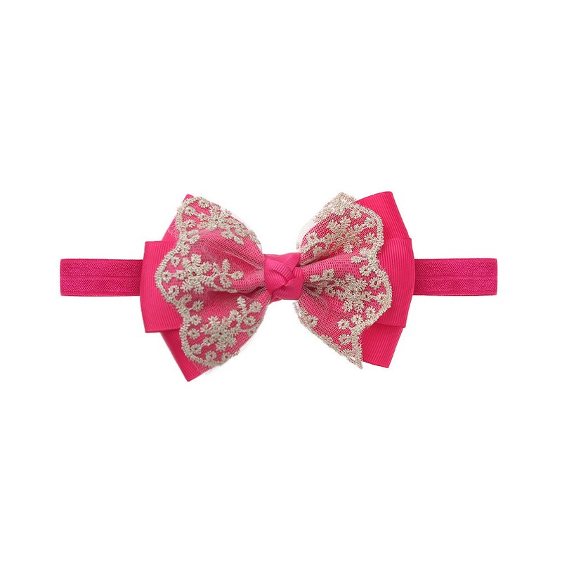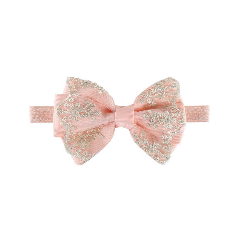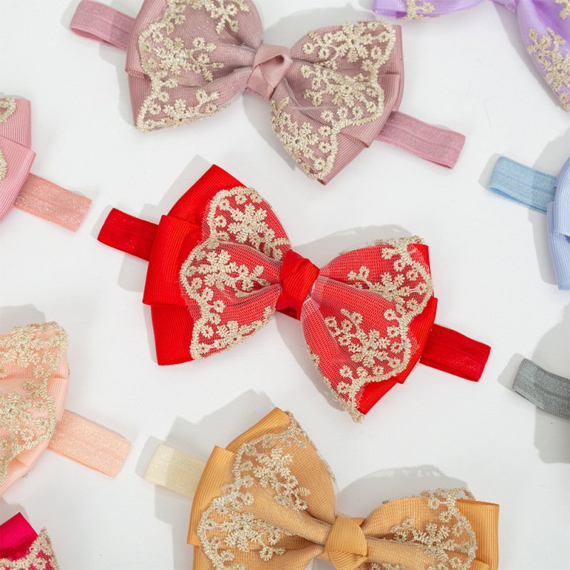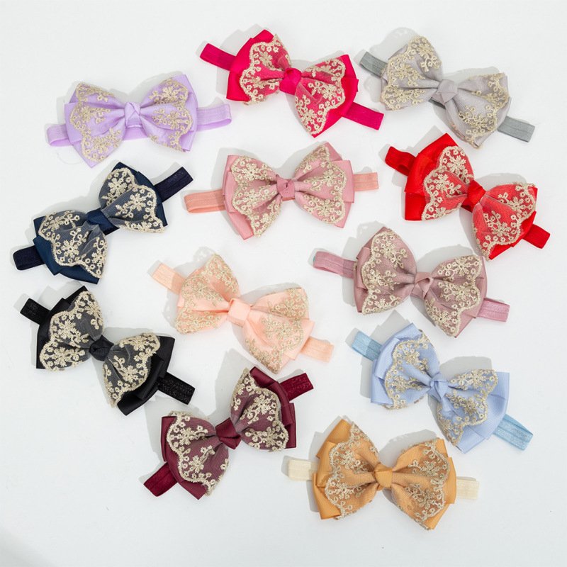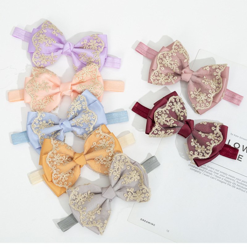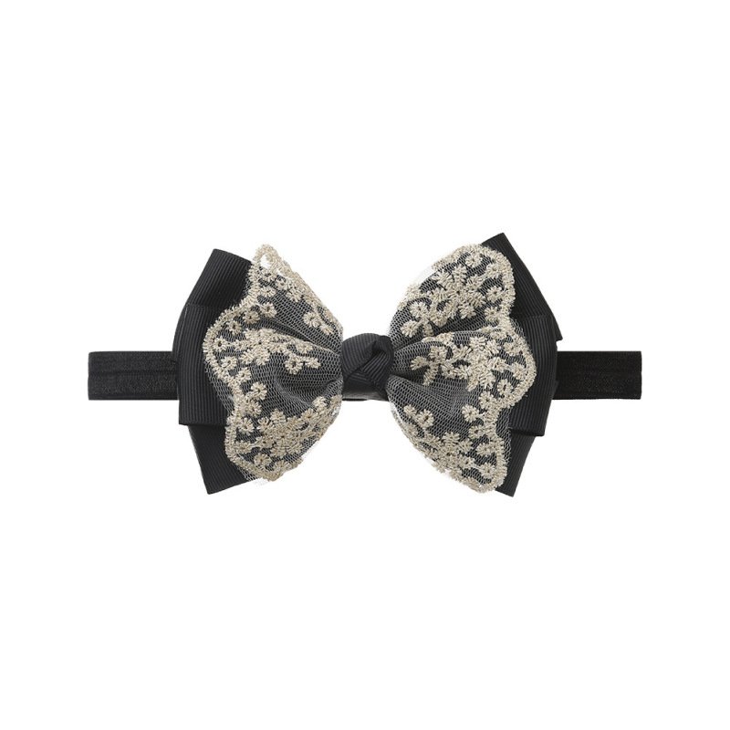 Children Kids Baby Fashion Girls Double Layer Gold Lace Bow Headband