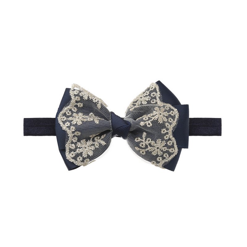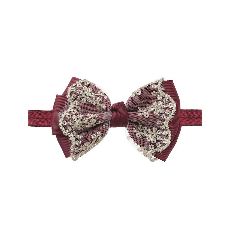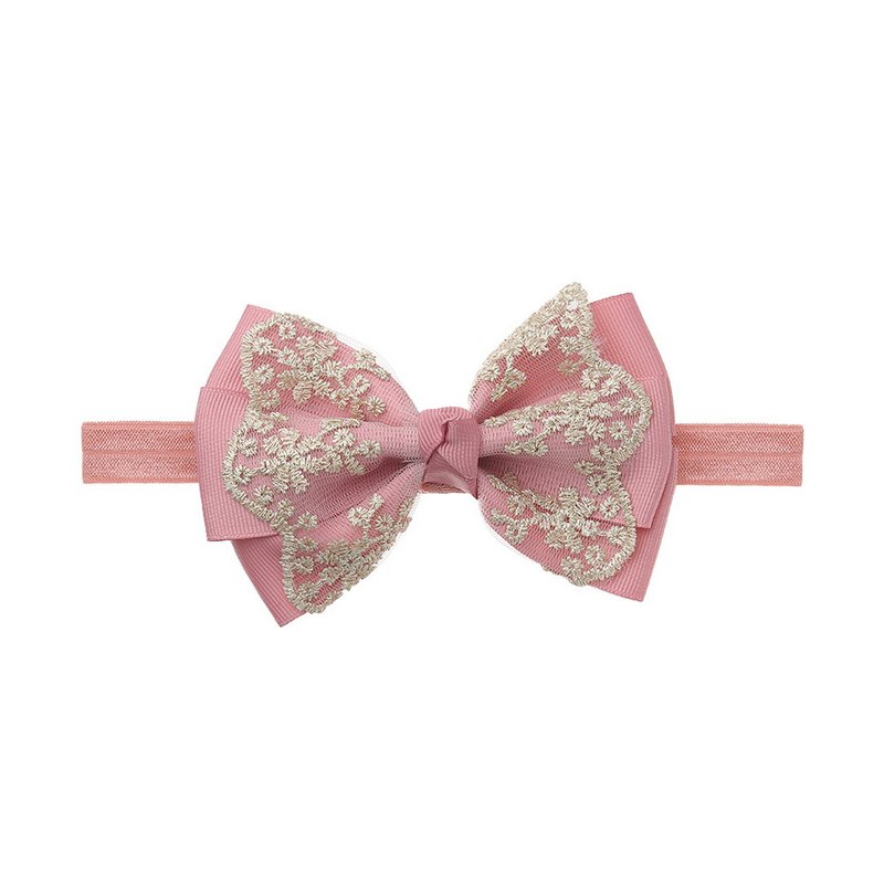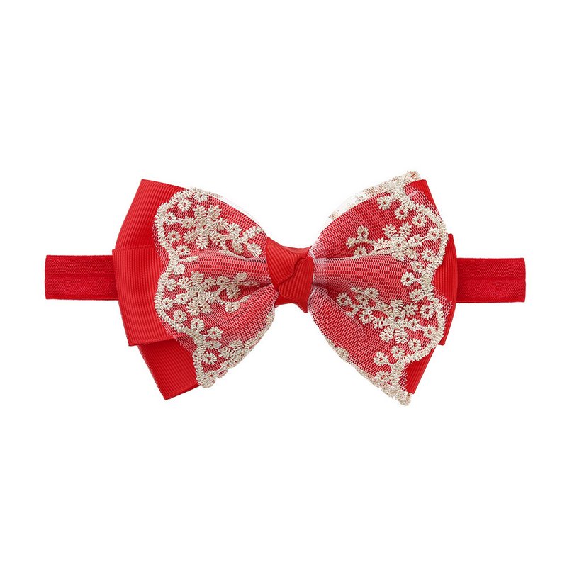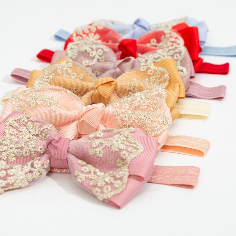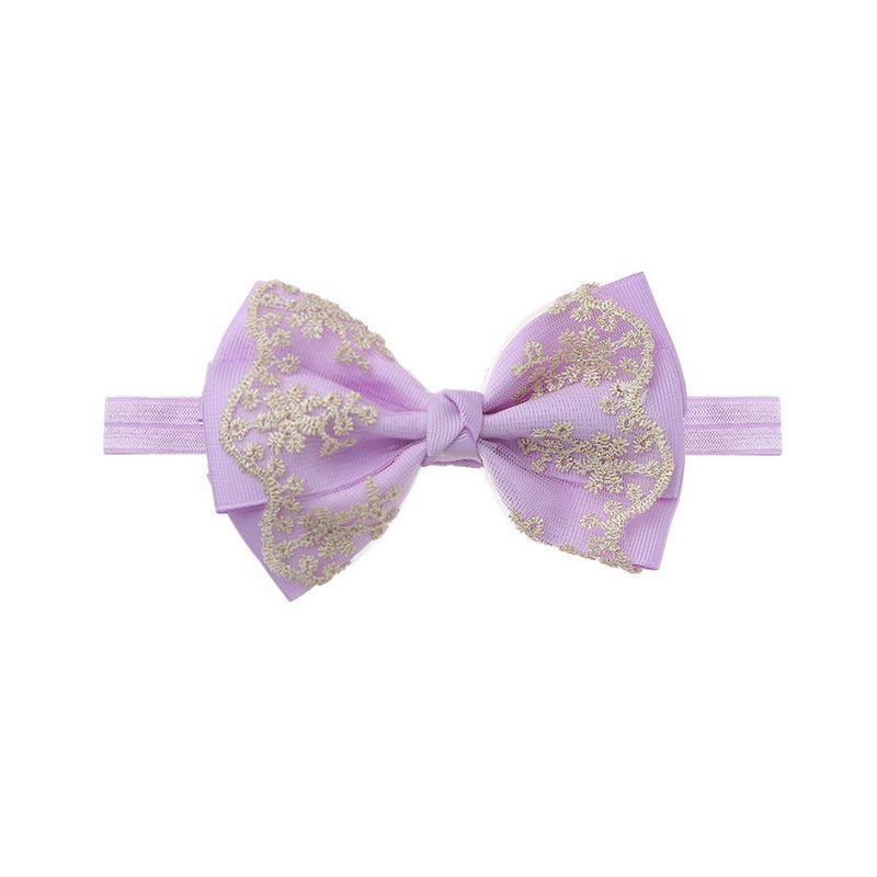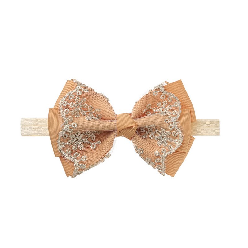 Children Kids Baby Fashion Girls Double Layer Gold Lace Bow Headband