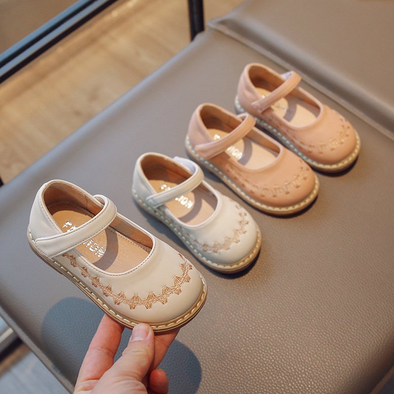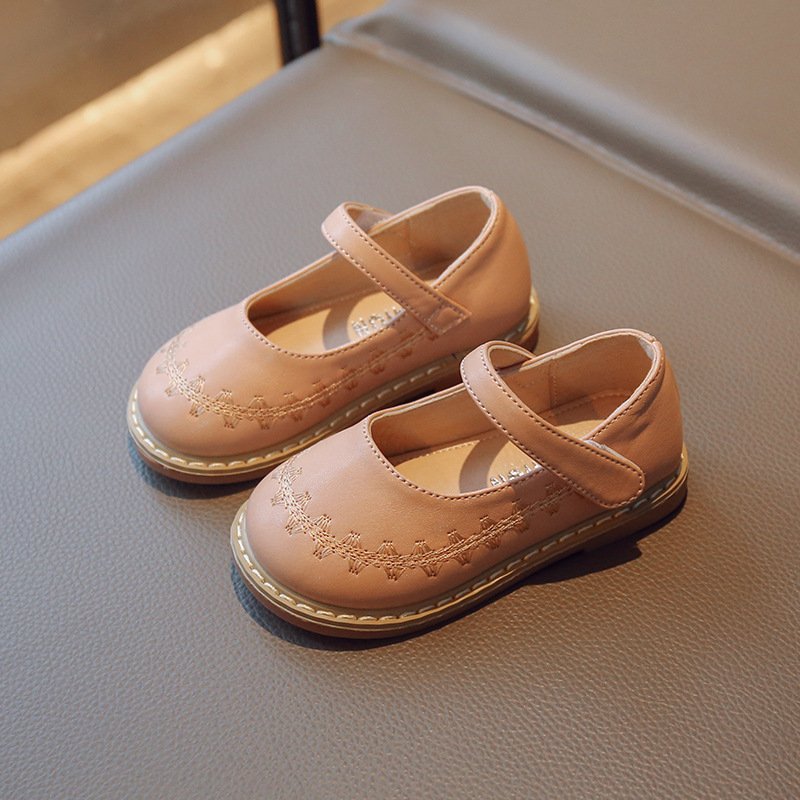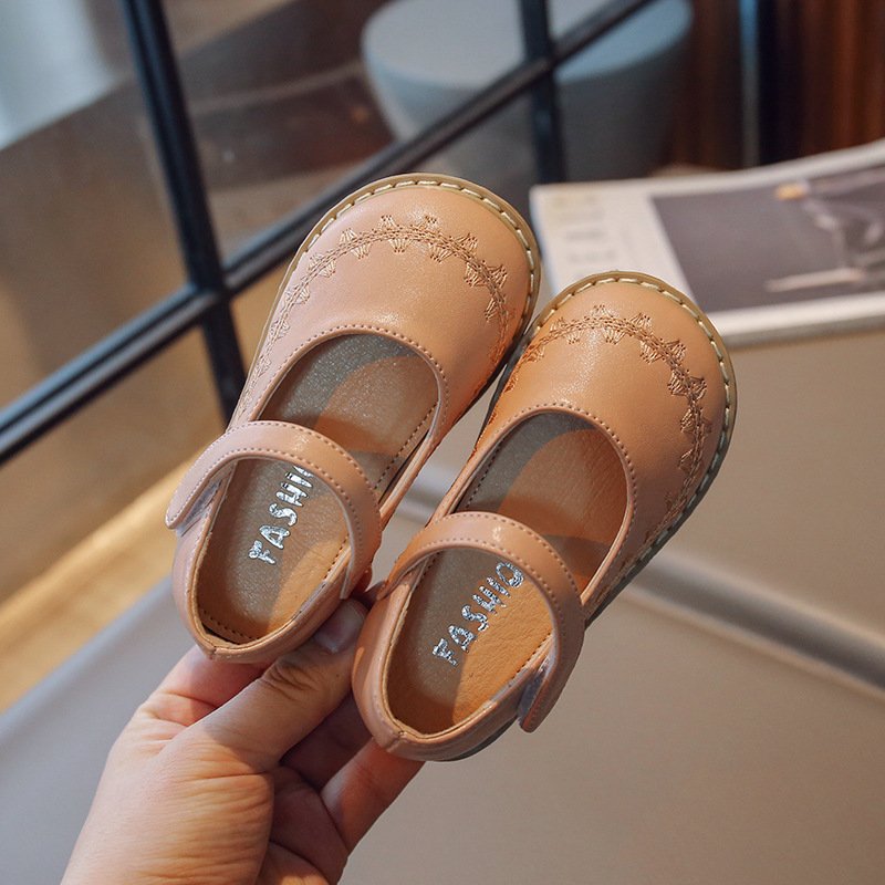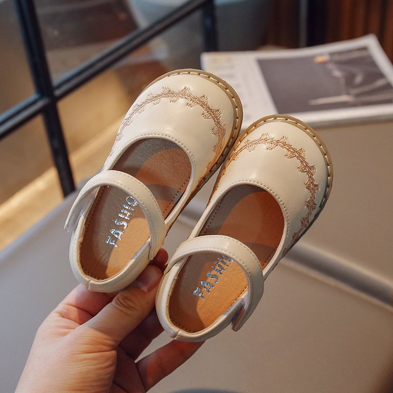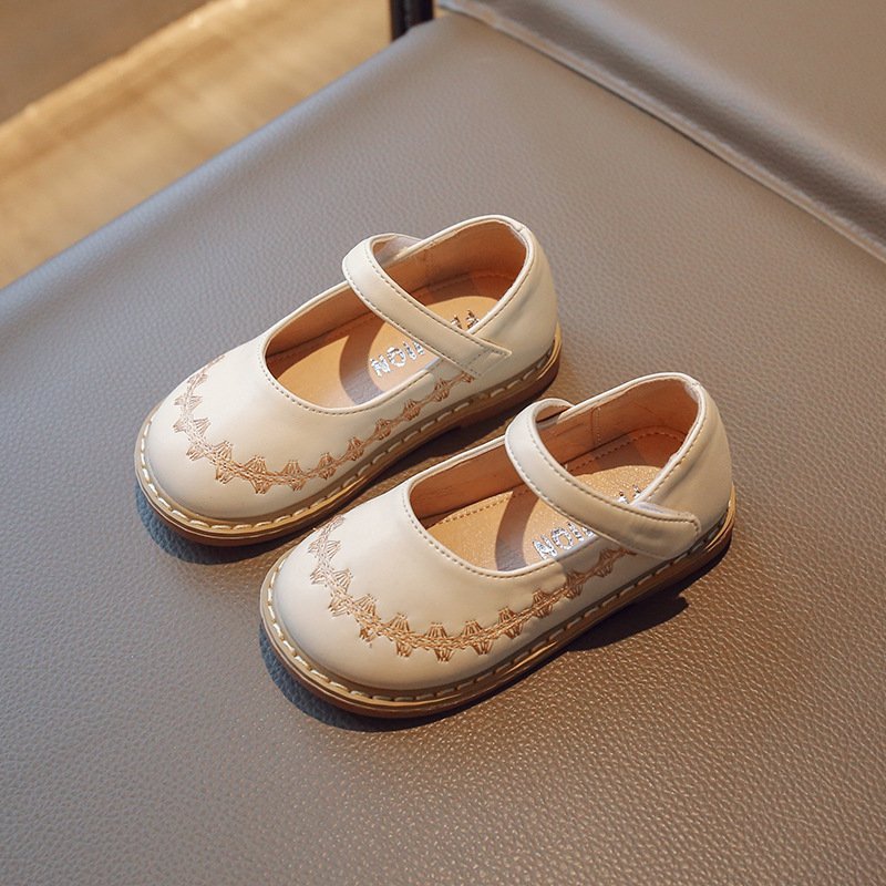 Children Kids Baby Fashion Girls Embroidered Princess Pu Leather Shoes
