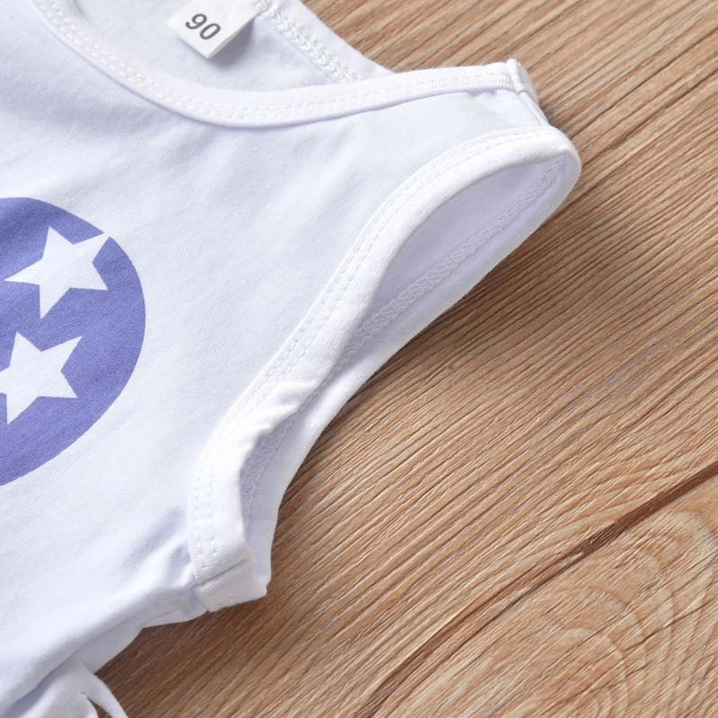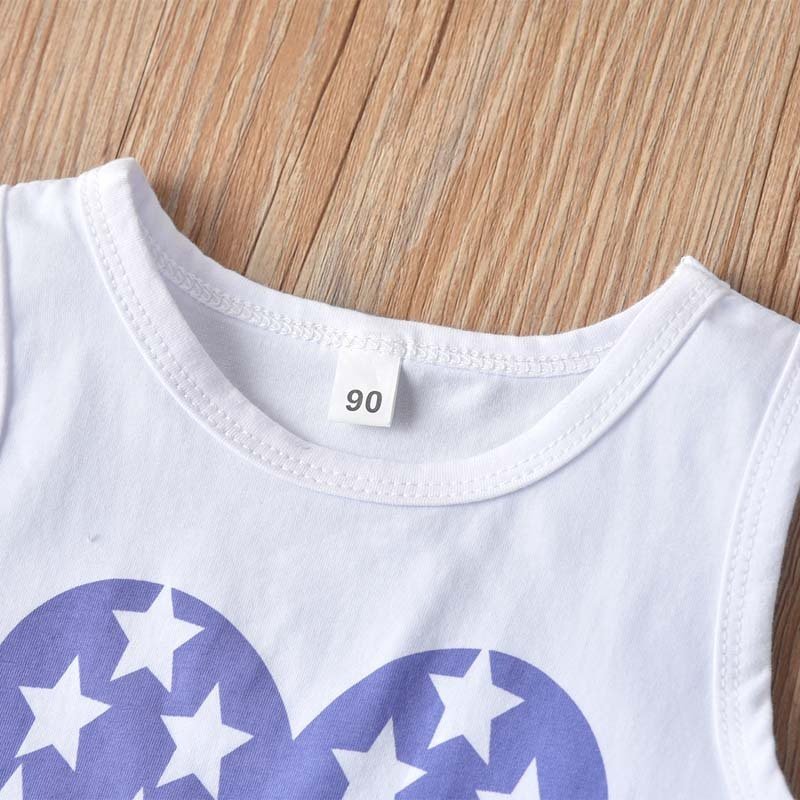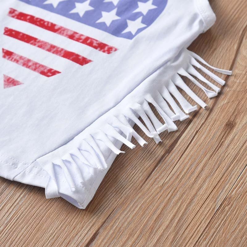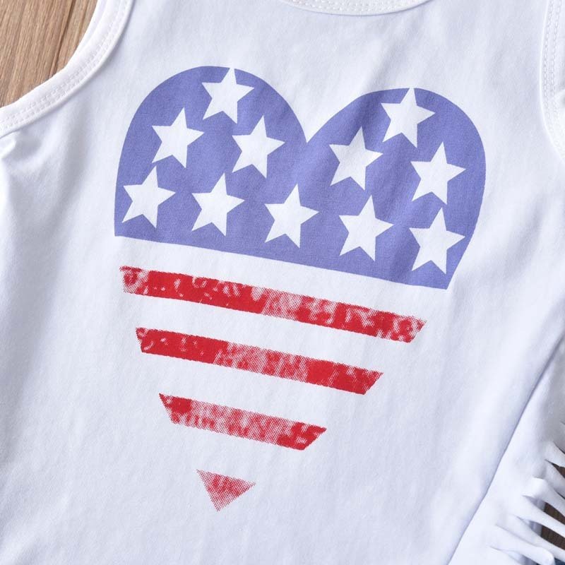 Children Kids Baby Fashion Girls Flag Print Sleeveless Top And Denim Shorts 2pcs Set