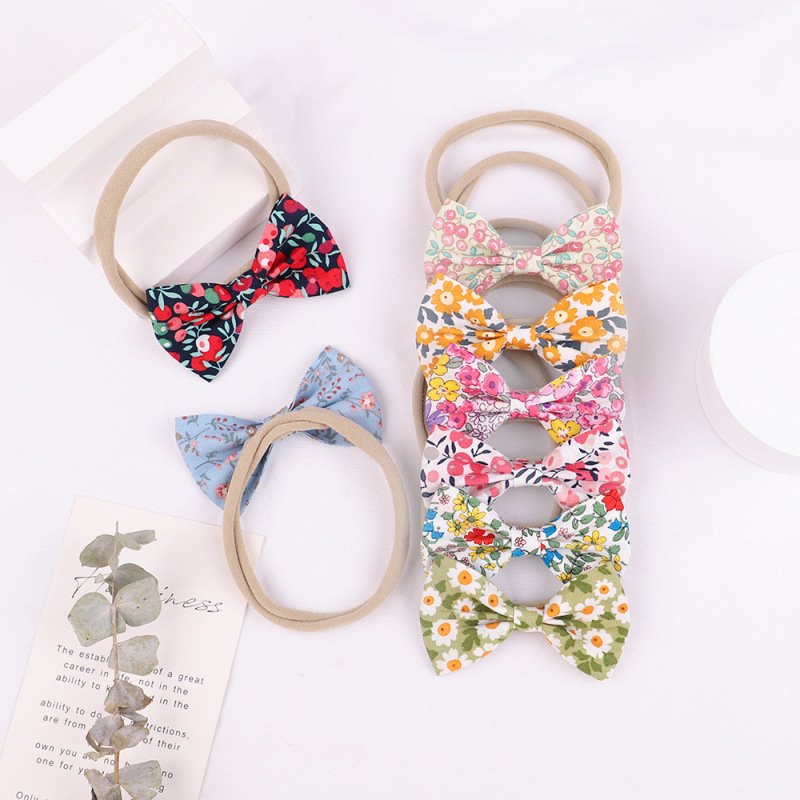 Children Kids Baby Fashion Girls Flower Print Bowknot Elastic Headband Hair Accessories