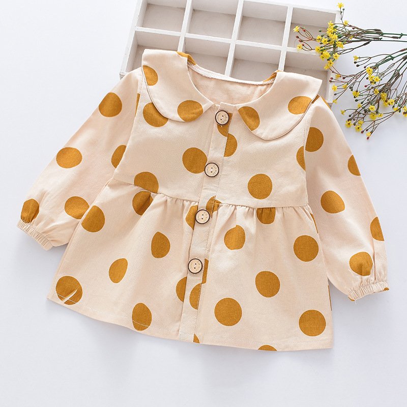 Children Kids Baby Fashion Girls Long Sleeve Dot Print Casual Lapel Top