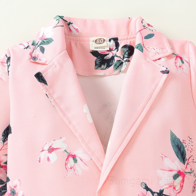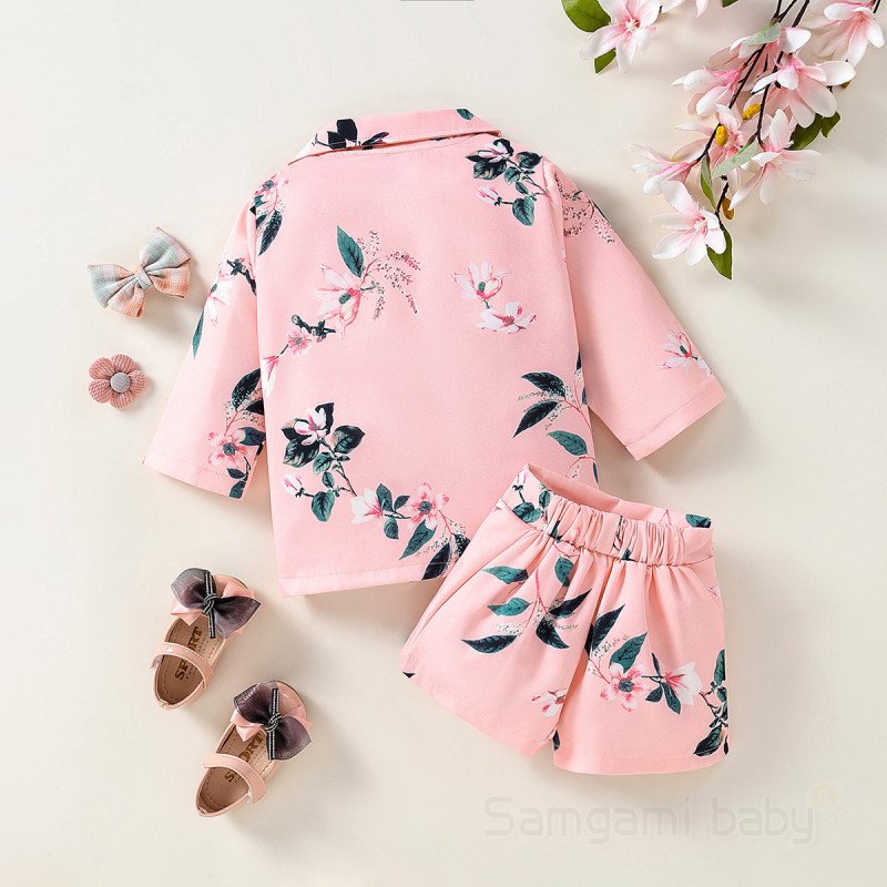Children Kids Baby Fashion Girls Long Sleeve Floral Print Jacket And Shorts 2pcs Set