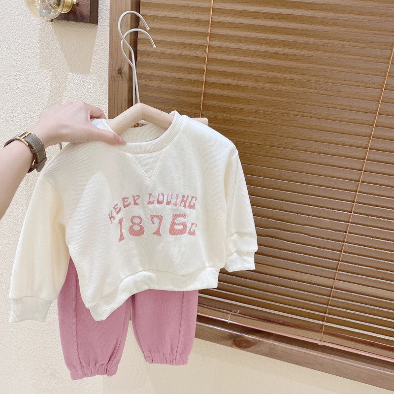 Children Kids Baby Fashion Girls Long Sleeve Letter Print Top And Pink Pants 2pcs Set