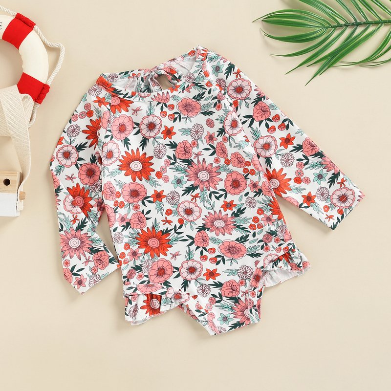 Children Kids Baby Fashion Girls Long Sleeve Print One-Piece Swimsuit