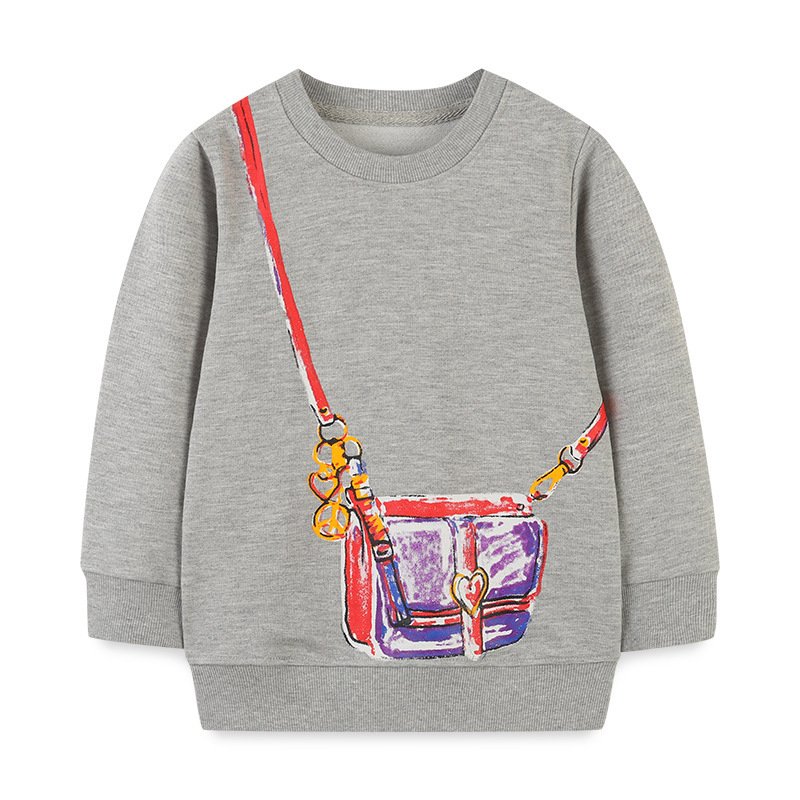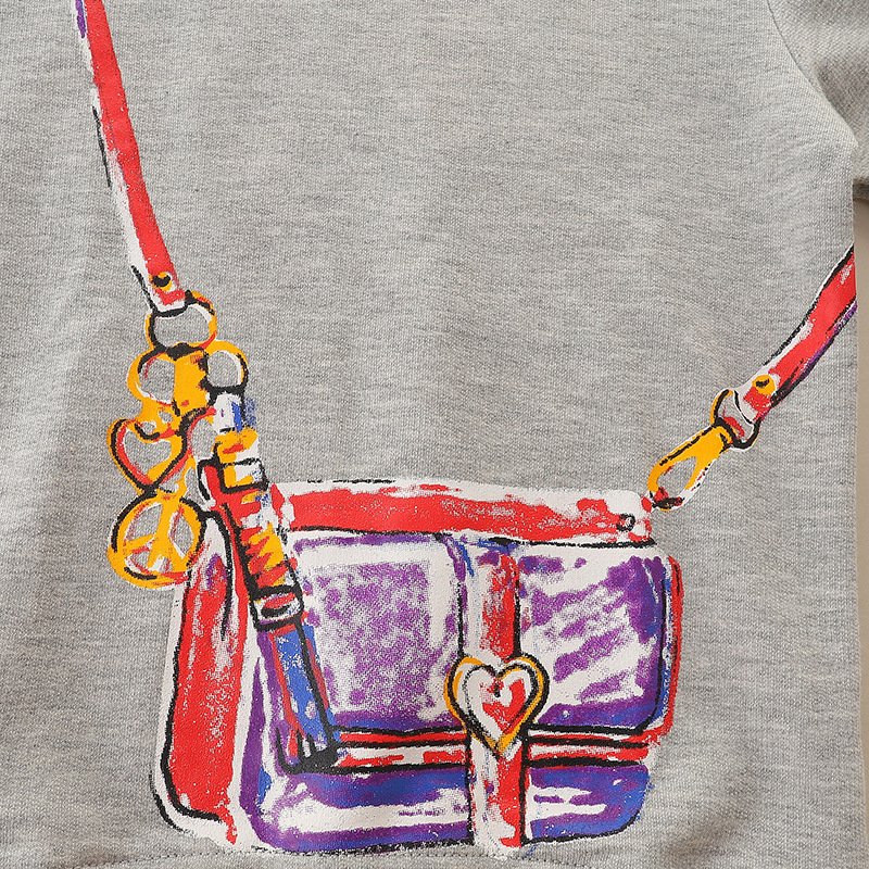 Children Kids Baby Fashion Girls Long Sleeve Round Neck Bag Print Sweatshirt