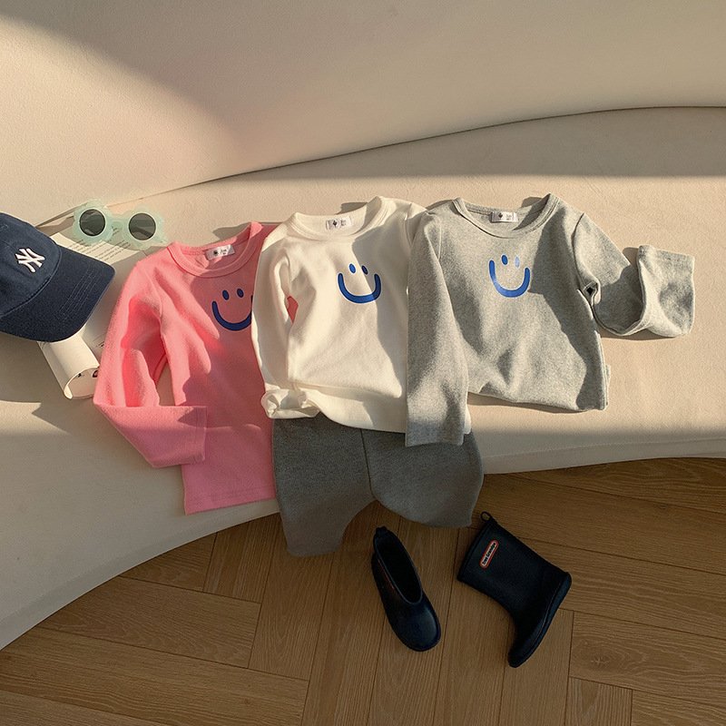 Children Kids Baby Fashion Girls Long Sleeve Smiling Face Print T-Shirt