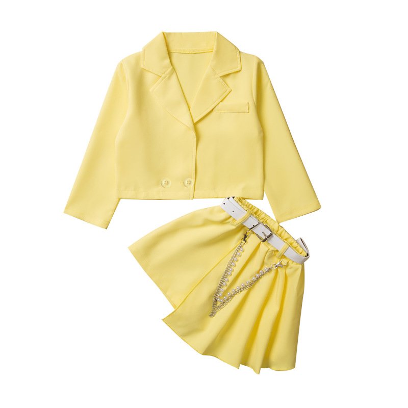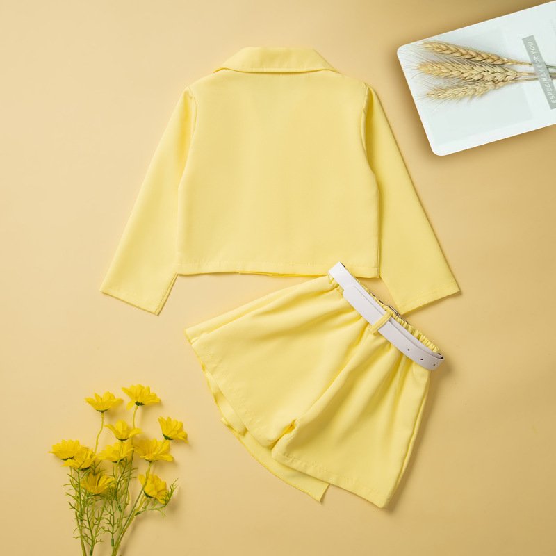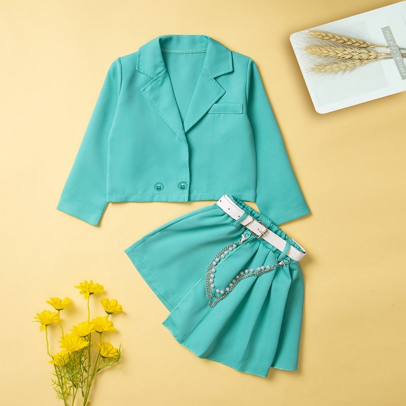 Children Kids Baby Fashion Girls Long Sleeve Solid Color Lapel Top And Skirt 2pcs Set