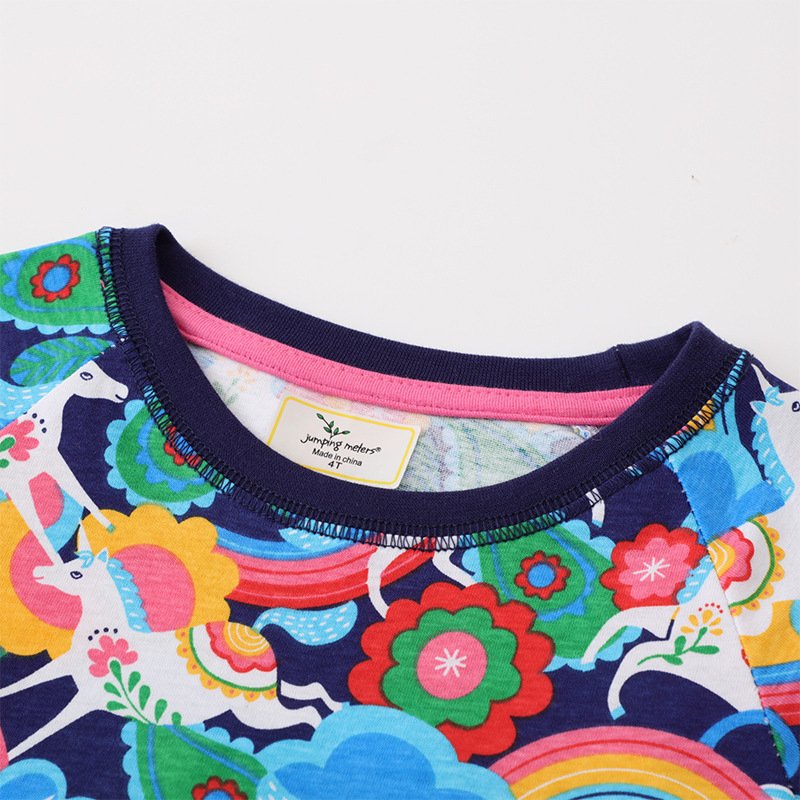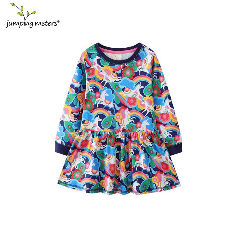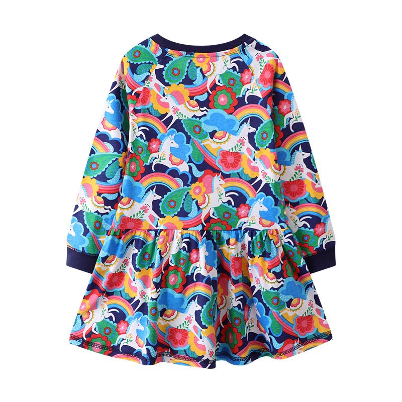 Children Kids Baby Fashion Girls Long Sleeve Unicorn Rainbow Print Princess Dress
