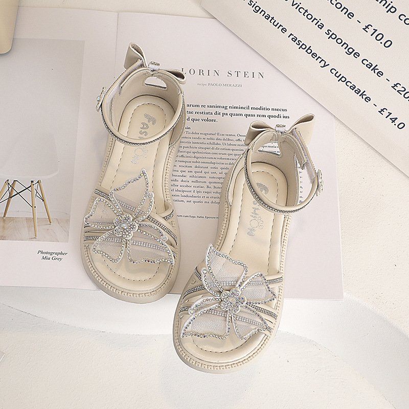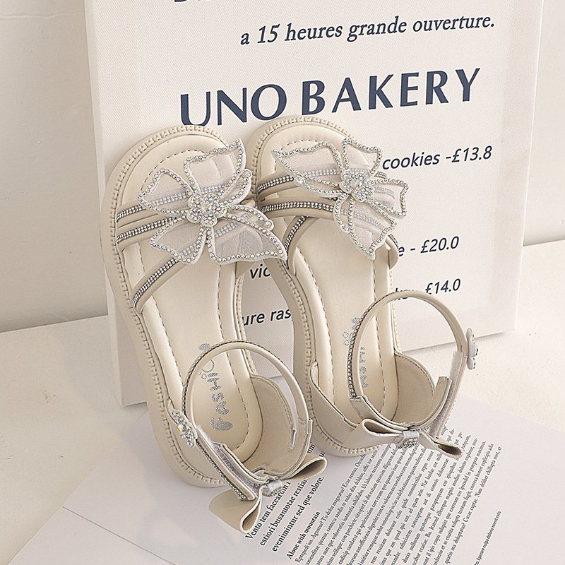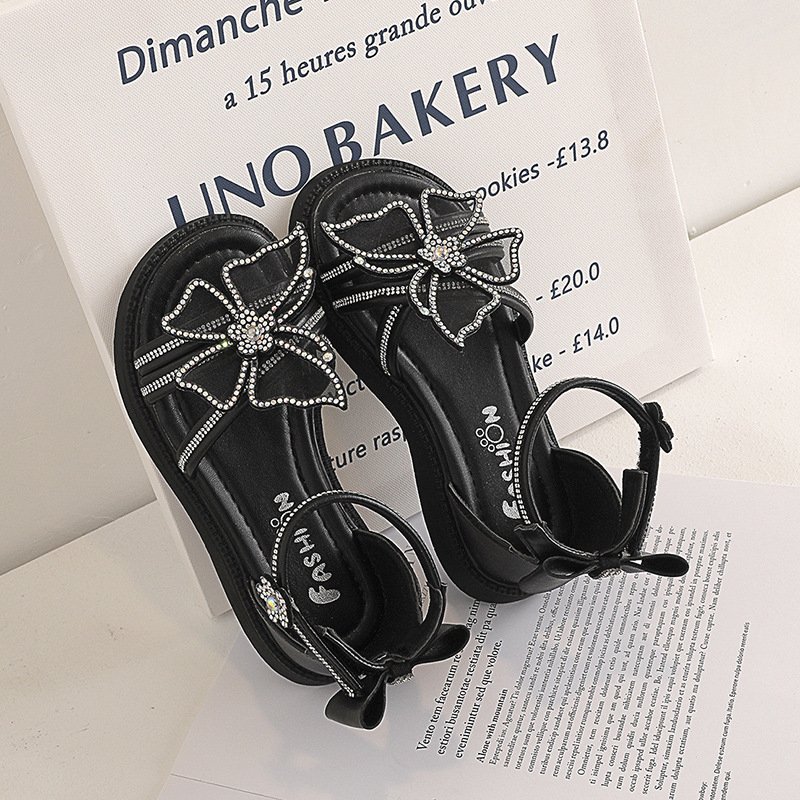 Children Kids Baby Fashion Girls Open Toe Rhinestones Bowknot Flats Princess Sandals Shoes
