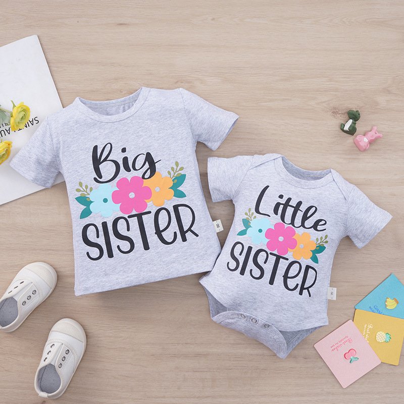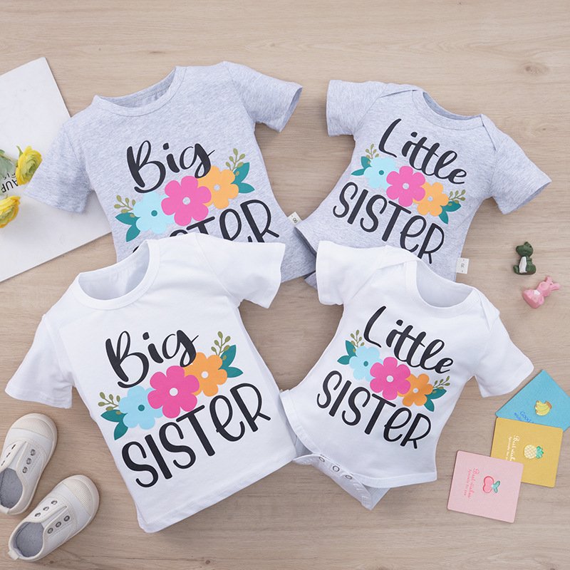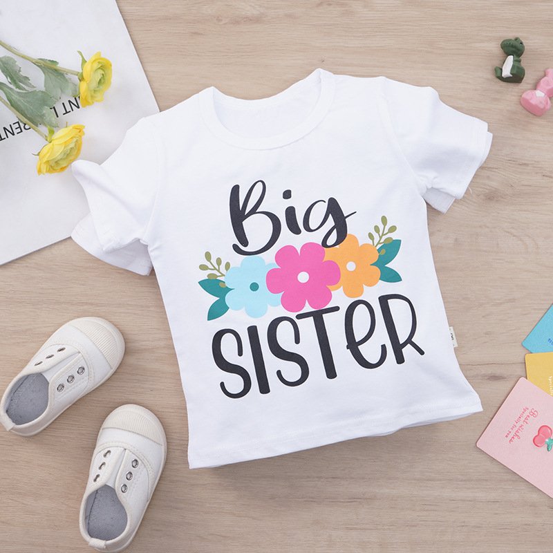 Children Kids Baby Fashion Girls Patchwork Letter Sister T-Shirt