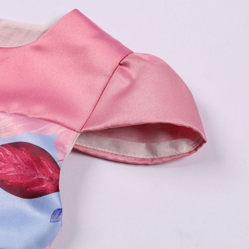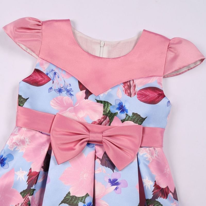 Children Kids Baby Fashion Girls Princess Short Sleeve Flower Print Bowknot Party Dress