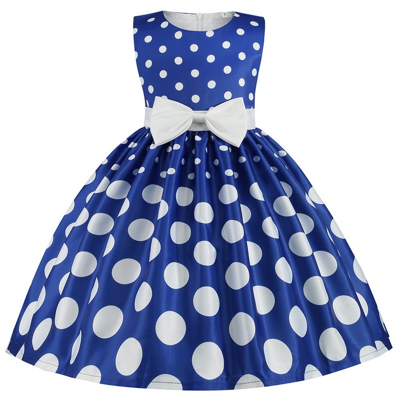 Children Kids Baby Fashion Girls Princess Sleeveless Polka Dot Print Bowknot Party Dress
