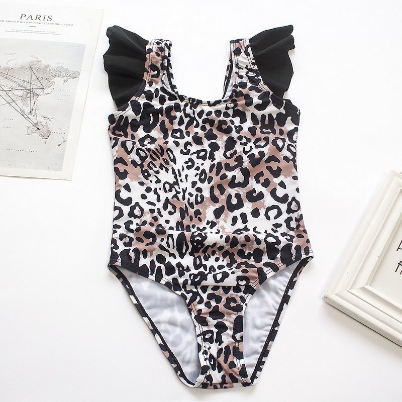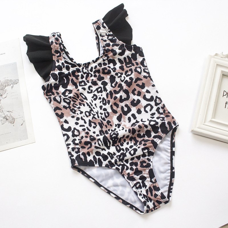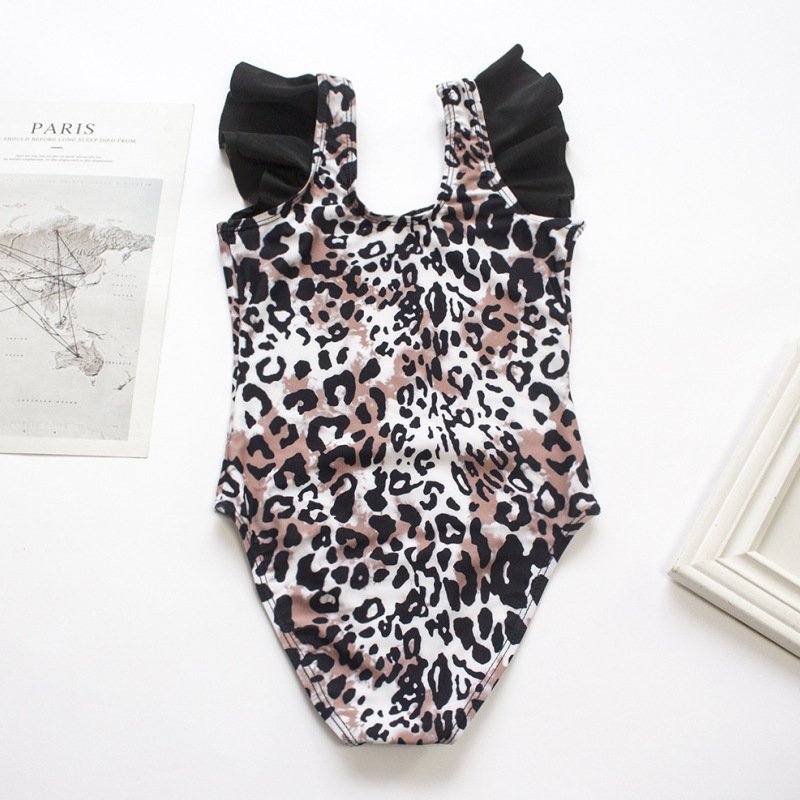 Children Kids Baby Fashion Girls Ruffle Leopard Print Sleeve One Piece Swimsuit