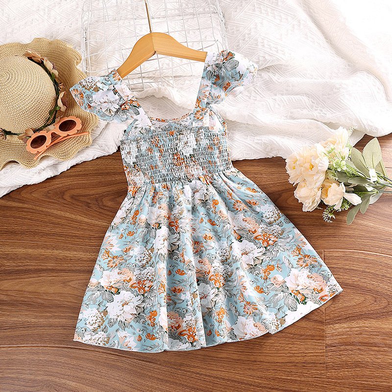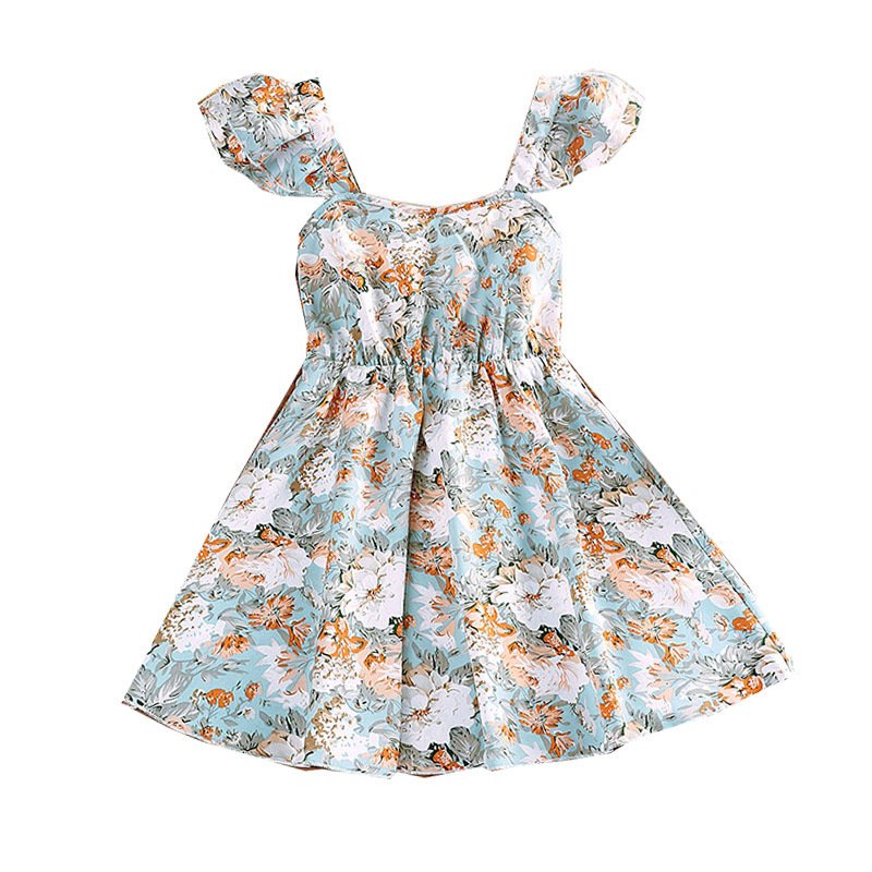 Children Kids Baby Fashion Girls Ruffle Sleee Flower Print Suspender Dress