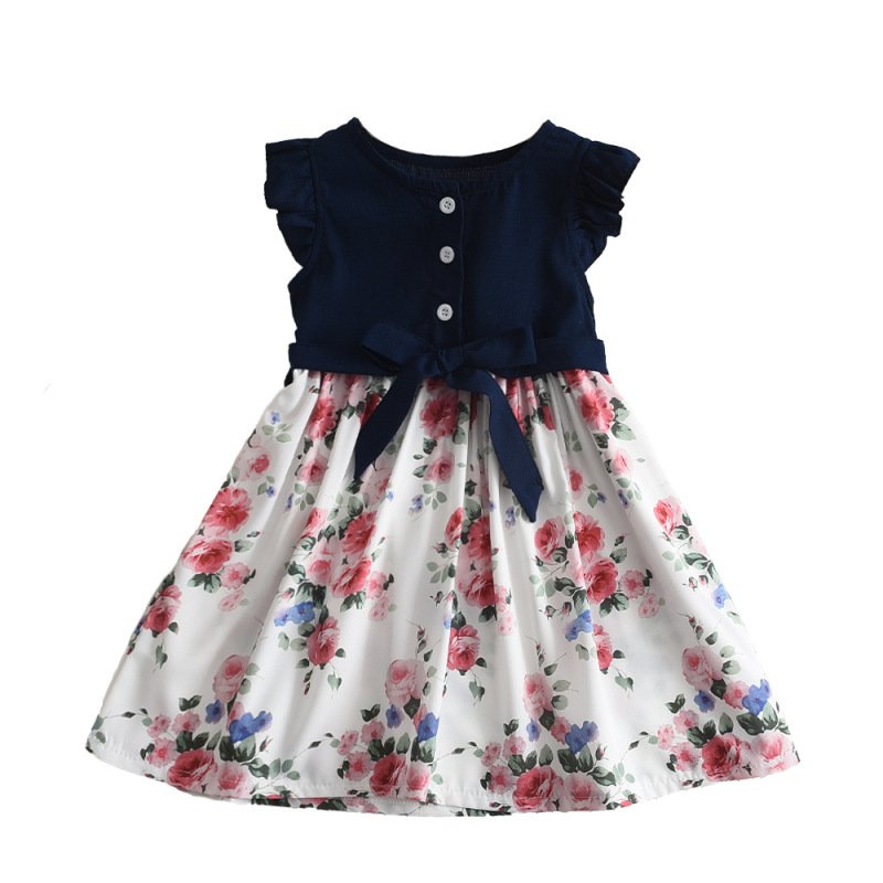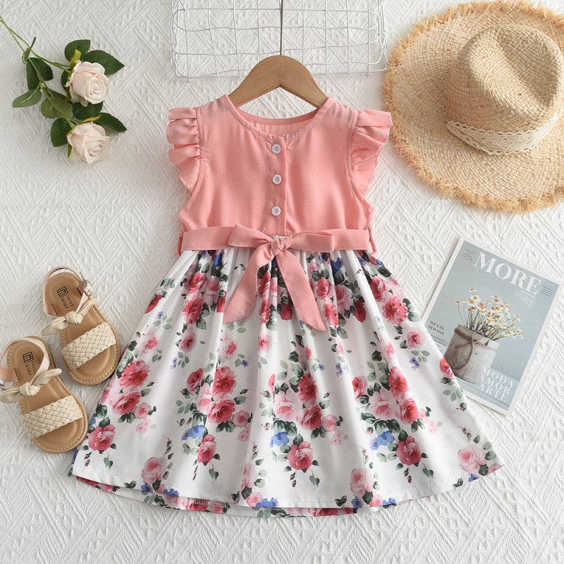 Children Kids Baby Fashion Girls Ruffle Sleeve Flower Print Bow Knot Princess Dress