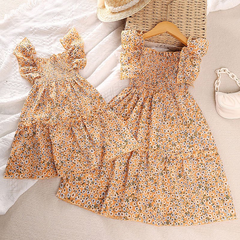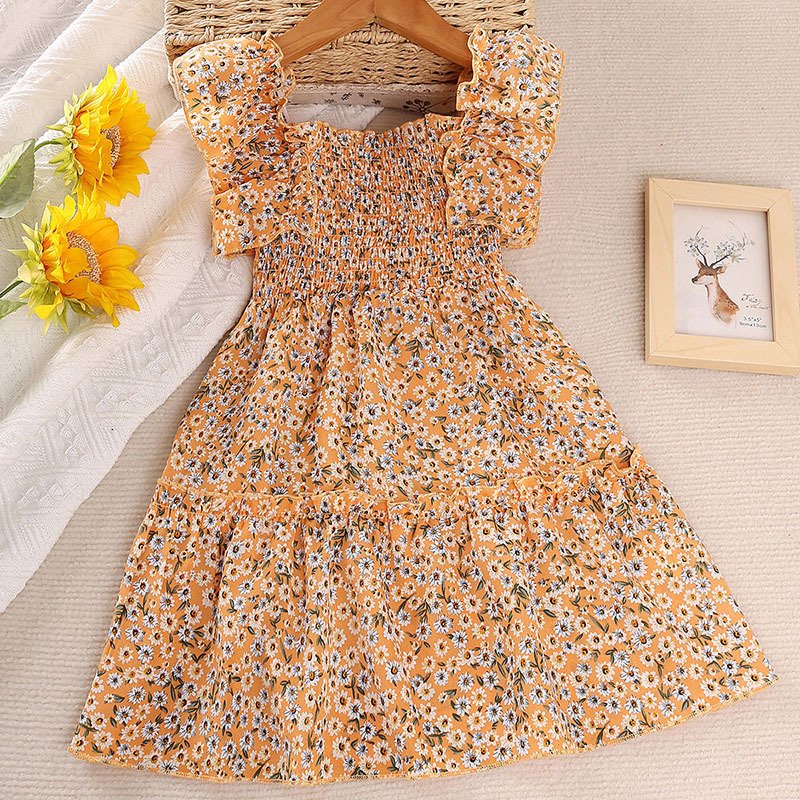 Children Kids Baby Fashion Girls Ruffle Sleeve Flower Print Princess Dress