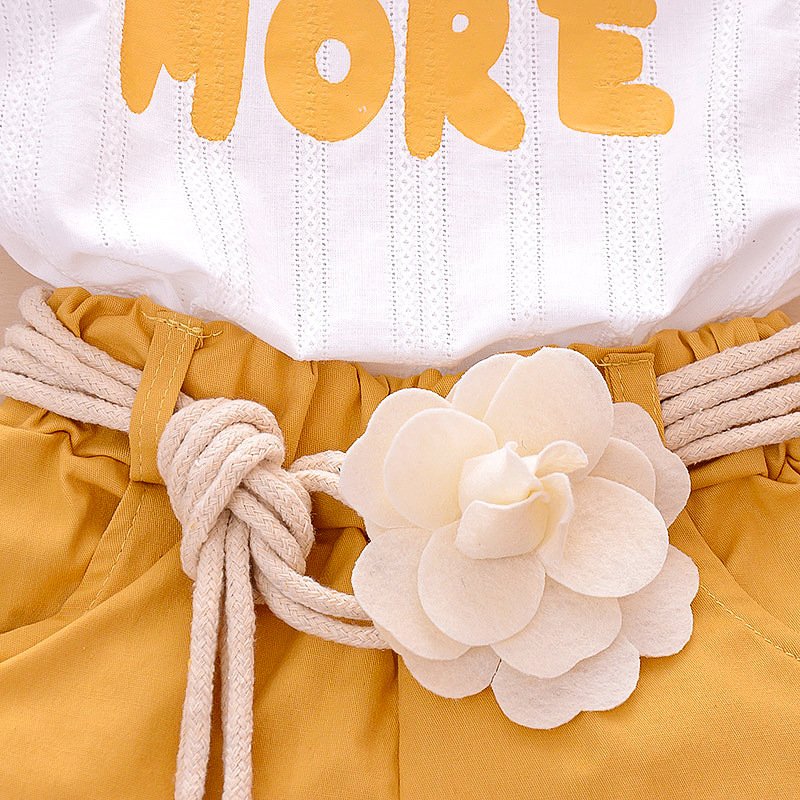 Children Kids Baby Fashion Girls Ruffle Sleeve Letter Top And Shorts Floral Belt 2pcs
