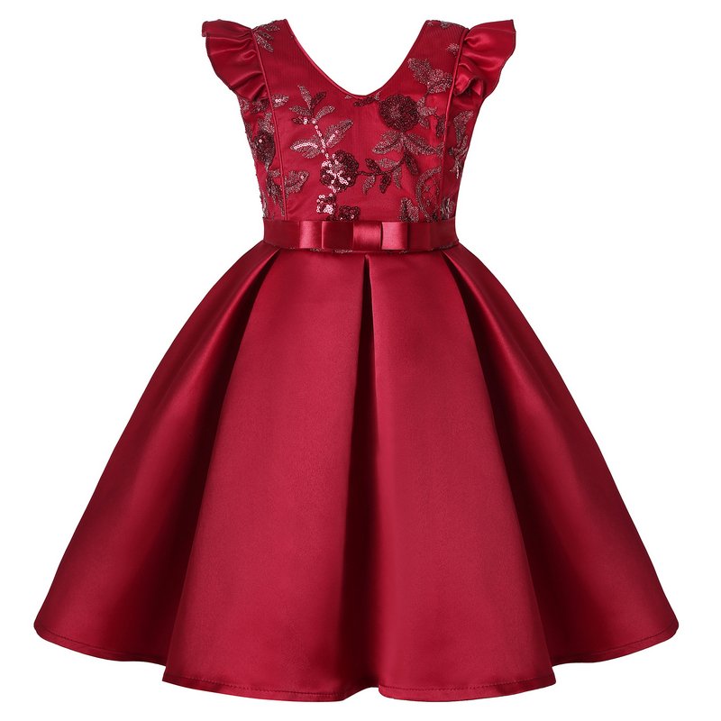 Children Kids Baby Fashion Girls Ruffle Sleeve Sequin Bow Princess Festival Party Dress
